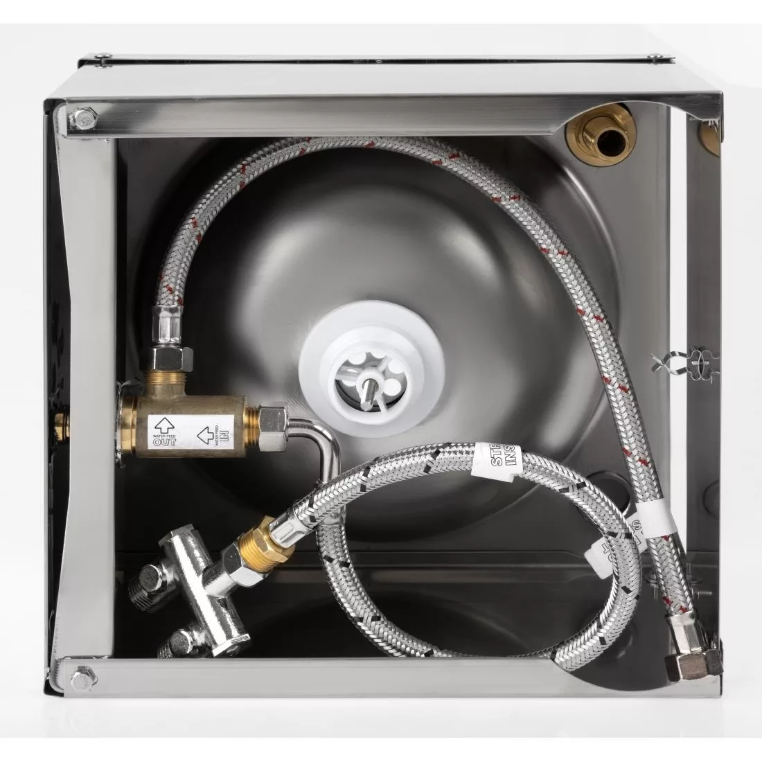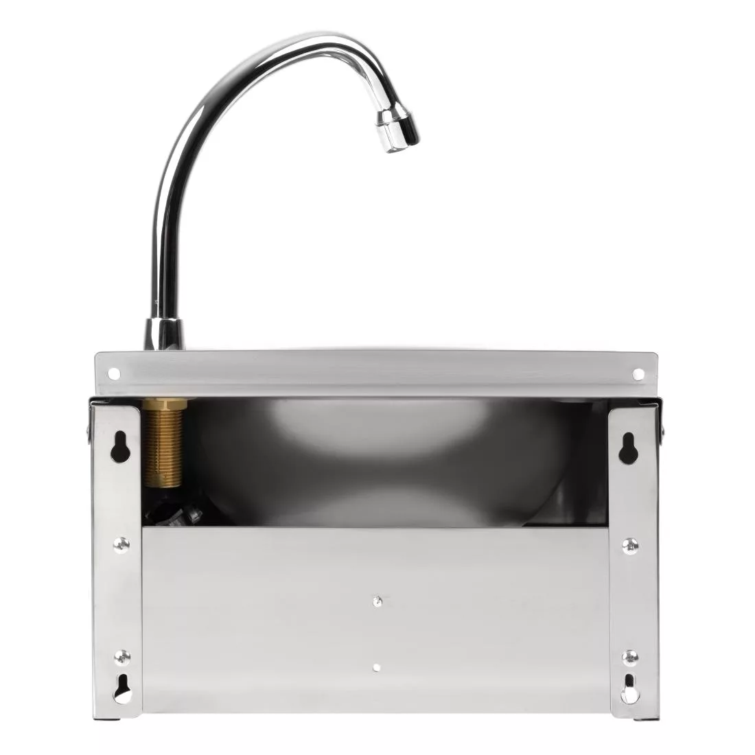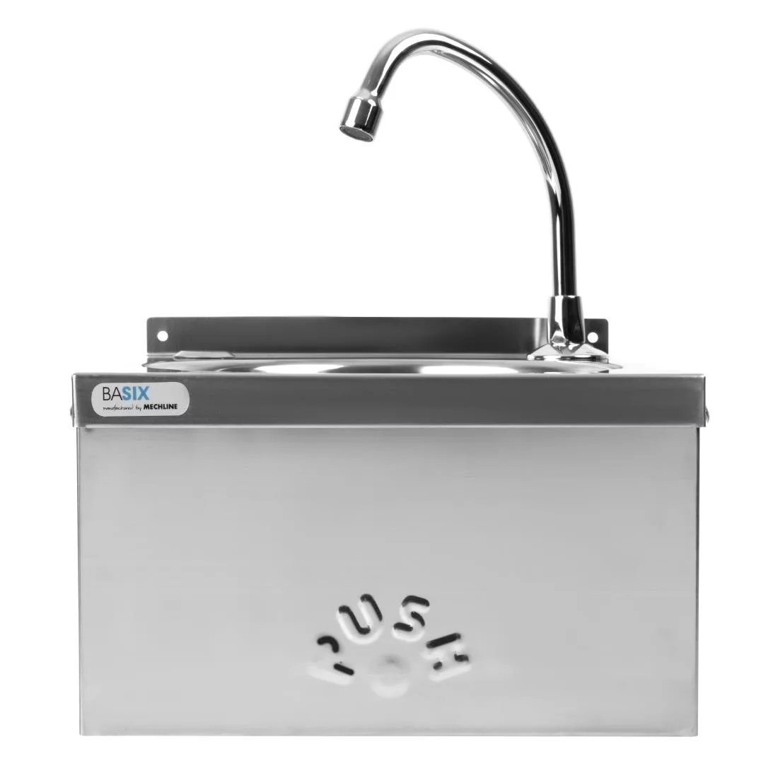 Complete hands-free ‘push front’ wash station for improved hygiene and reducing the risk of cross-contamination and water wastage. Stainless steel basin complete with drain boss, premixer valve and spout. Splashback (CC261) sold separately.