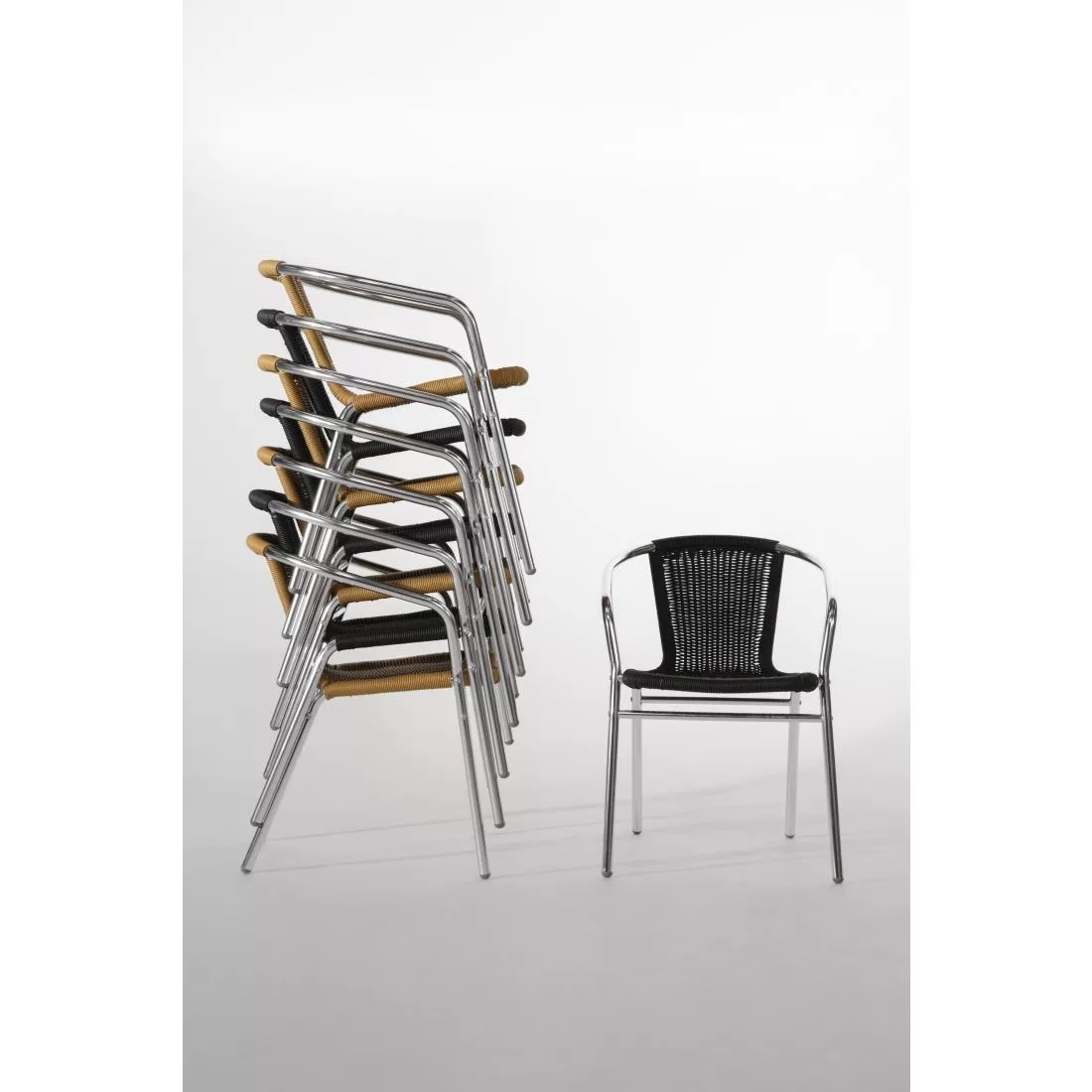 Aluminium Frame. PE Wicker Seat. Seat Height: 450mm. Stackable