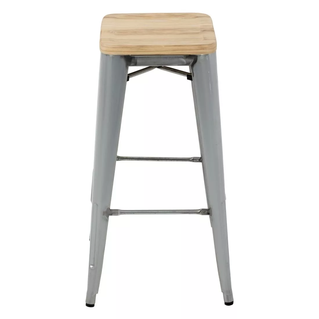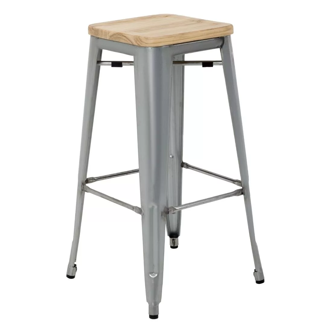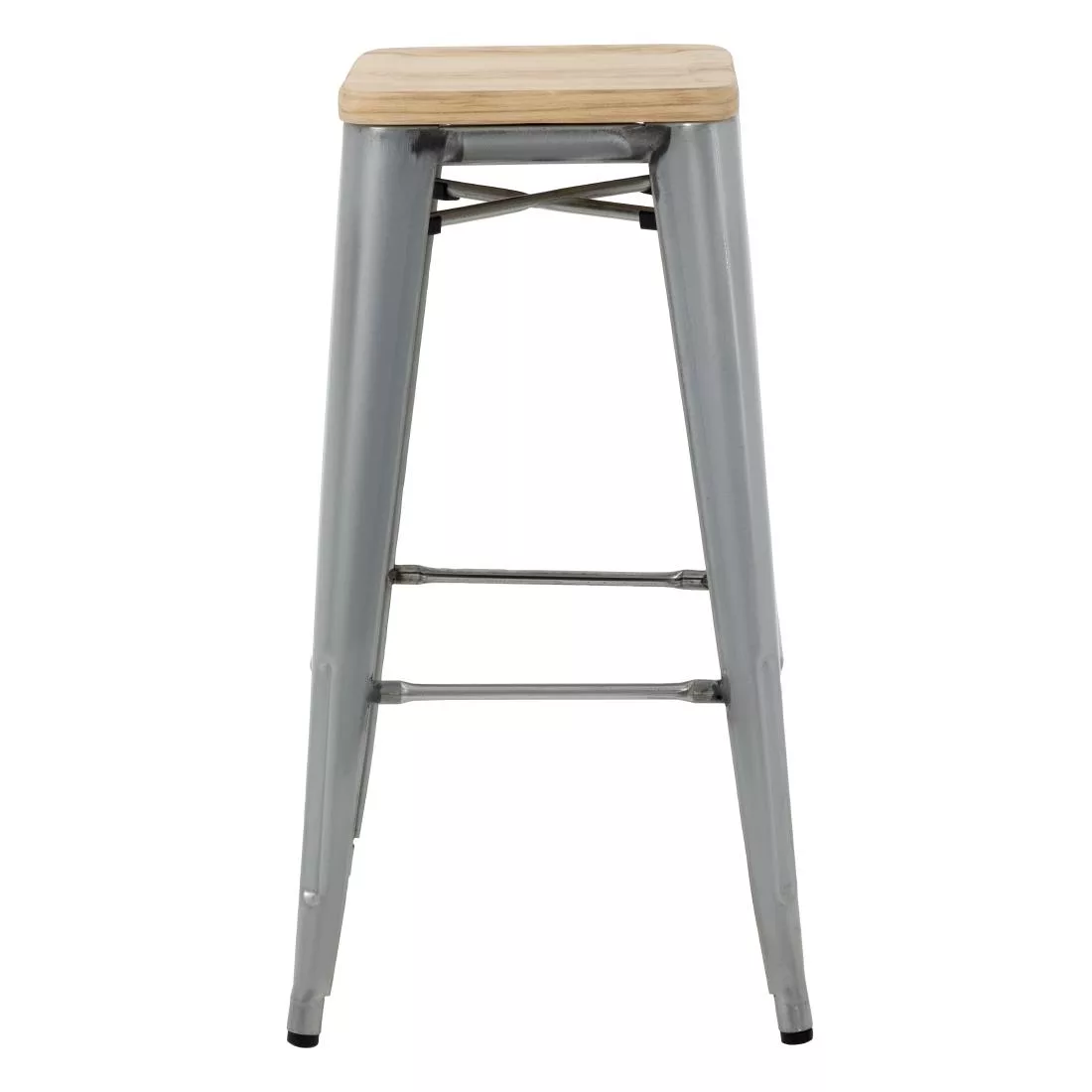 Bolero Bistro High Stools with Wooden Seat Pad Galvanised Steel (Pack of 4)