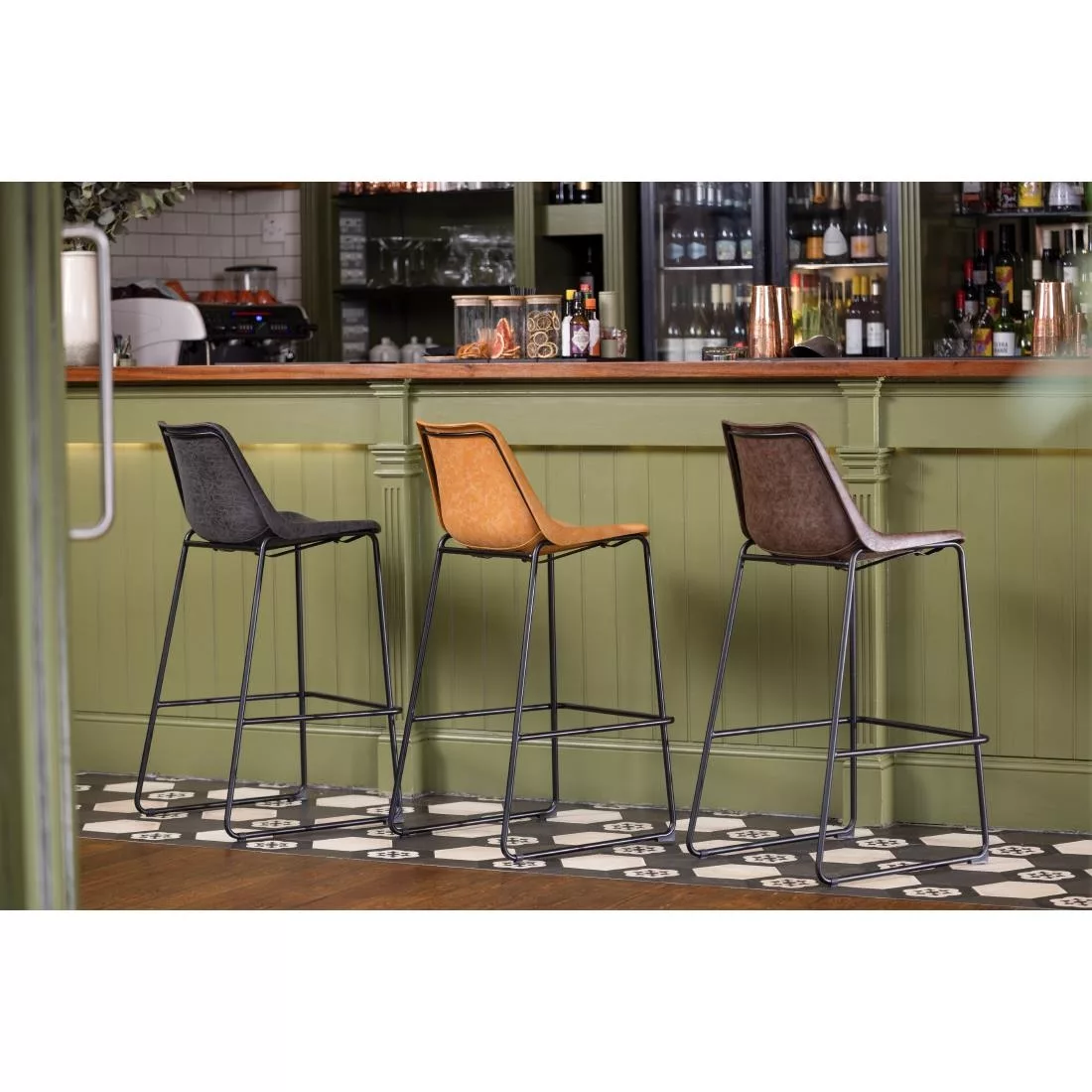 Stylish seating designed to look like vintage leather. Polyurethane seat with metal frame.