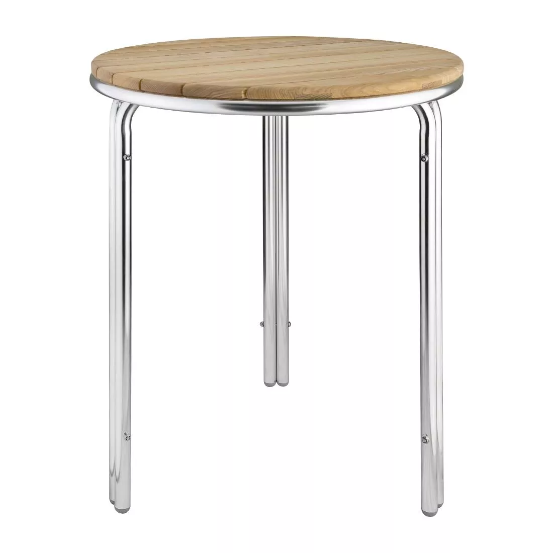 Refresh your indoor or outdoor seating area with this eye-catching ash table from Bolero. With its striking ash wood tabletop and elegant aluminium base, this table makes an ideal addition to any beer garden, patio or other seating areas.
