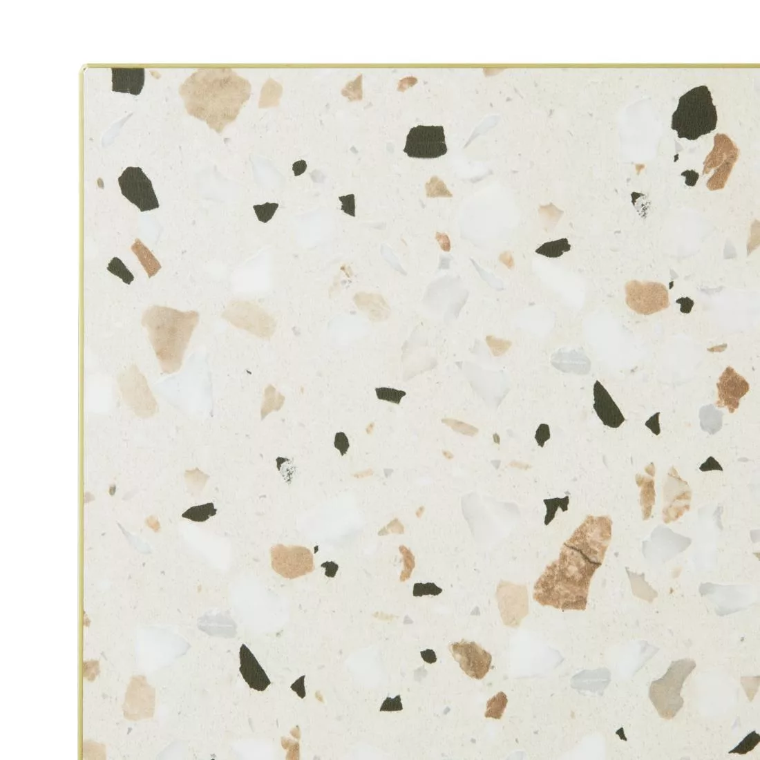 Measuring 700x700mm in size, this Bolero square table top boasts a vibrant terrazzo print design complemented by a premium brass-effect edge in aluminium film. It comes pre-drilled to fit Bolero table bases and is stain and scratch resistant for lasting use. For convenience, the surface of the table easily wipes clean, saving you time both before and after service.