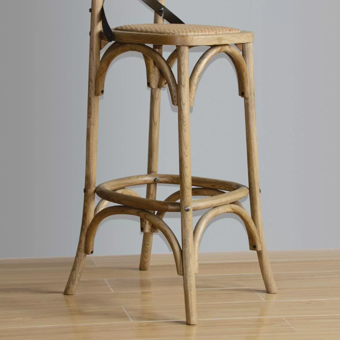 Vintage-style wooden bar stool with an eye-catching cross backrest, naturally finished for a classic look. Robustly constructed for a long service life, ideal for bars, cafes and restaurants. Sold separately.