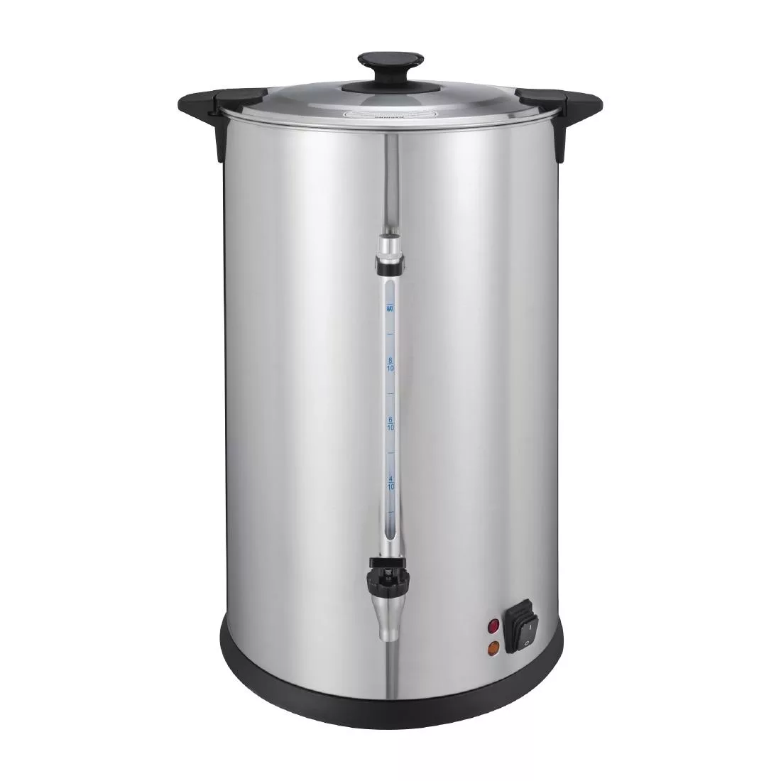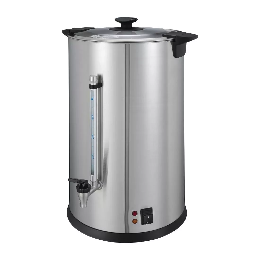 The Bravilor Bonamat coffee percolator allows you to brew large quantities of coffee quickly and easily – just fill the percolator manually with the desired quantities of water and ground coffee (can handle exactly 1 kg of course-ground coffee).At the end of the brewing cycle, the percolator switches automatically into keep warm mode. The stainless steel tap allows you to dispense the right amount of coffee. The gauge glass indicates the amount of coffee remaining in the container. The coffee is kept warm as long as the percolator is switched on. The moulded handles allow you to move the unit around.