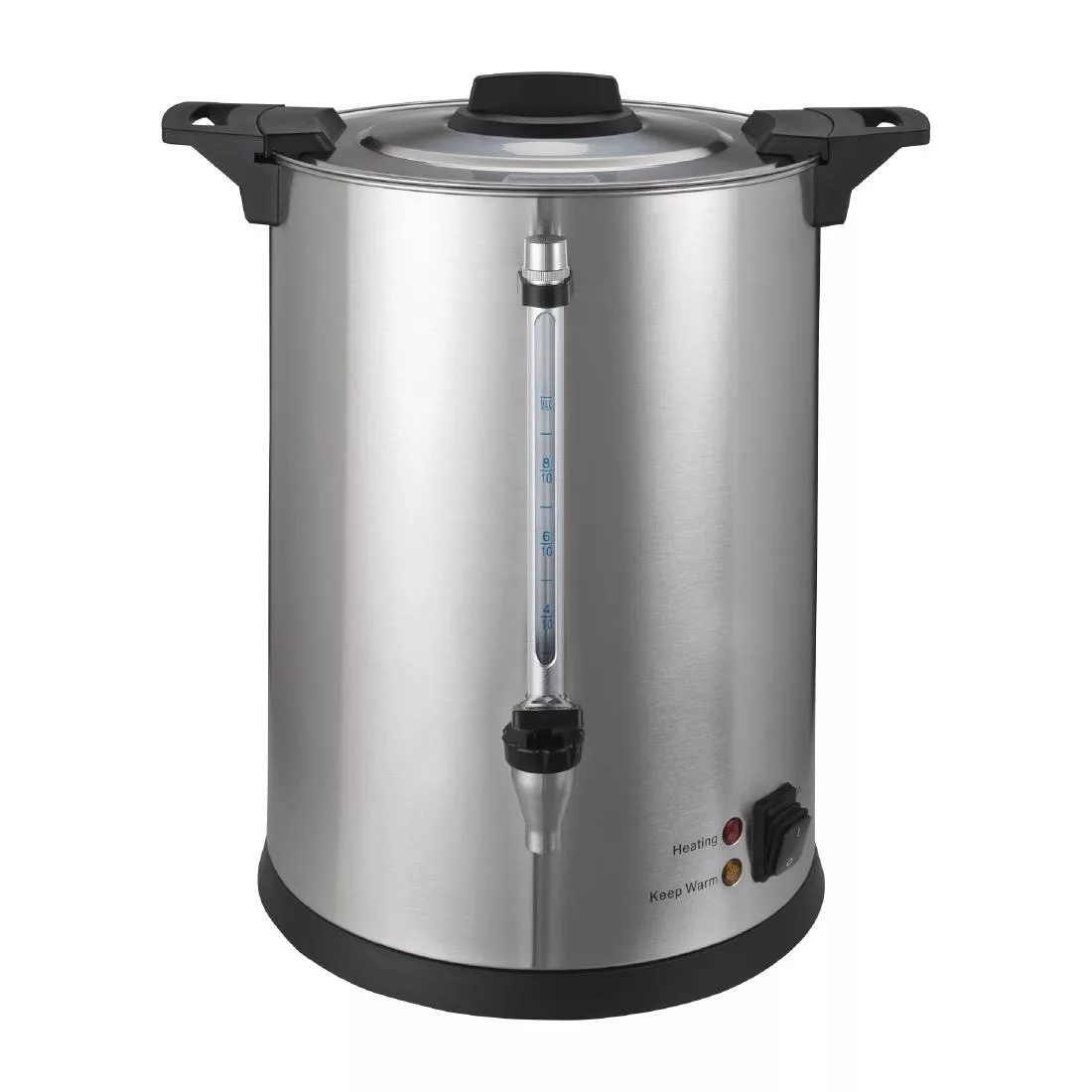 The Bravilor Bonamat coffee percolator allows you to brew large quantities of coffee quickly and easily – just fill the percolator manually with the desired quantities of water and ground coffee. At the end of the brewing cycle, the percolator switches automatically into keep warm mode. The stainless steel tap allows you to dispense the right amount of coffee. The gauge glass indicates the amount of coffee remaining in the container. The coffee is kept warm as long as the percolator is switched on. The moulded handles allow you to move the unit around.