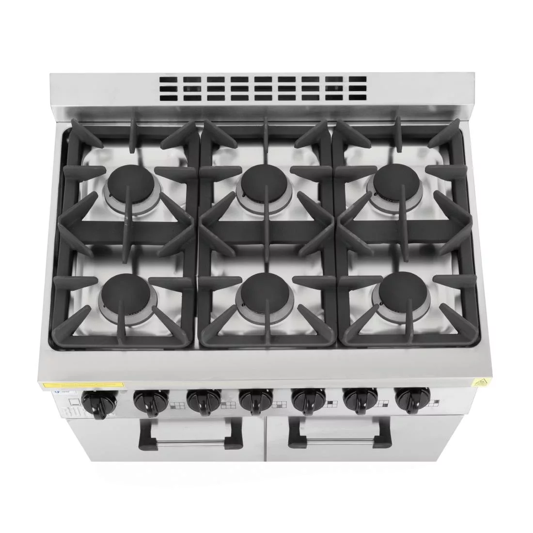 • Six powerful 4.3kW top burners (manual ignition) provide instant, controllable heat