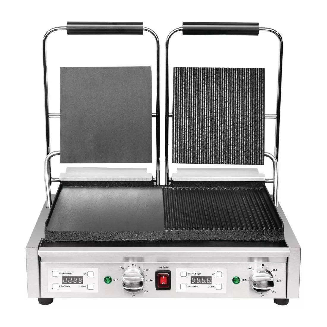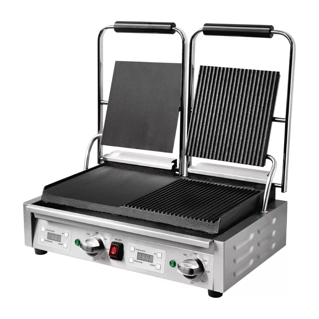Power: 2.9kW. Double grill. Ribbed & flat plates