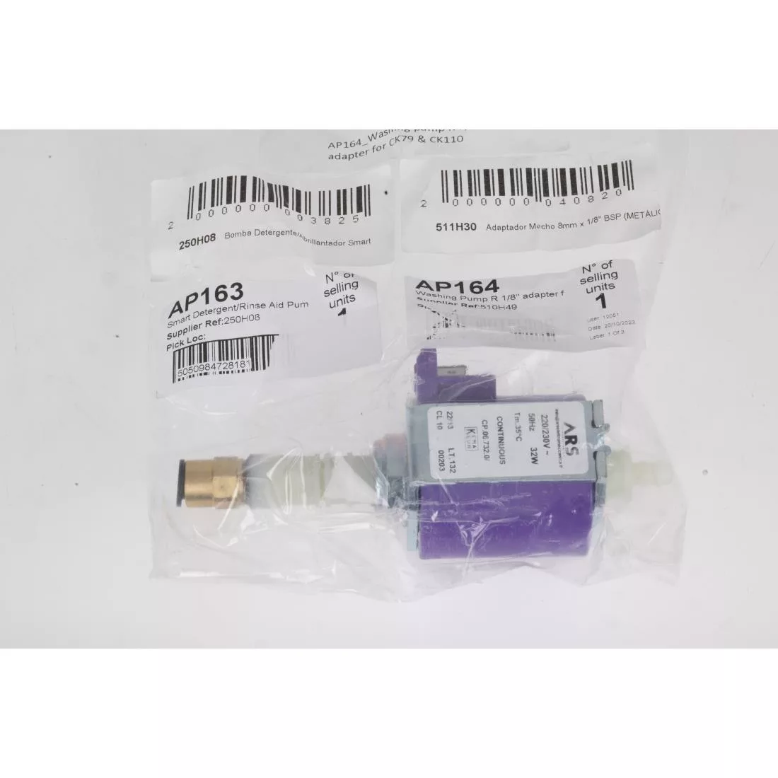 Replacement smart detergent/rinse aid pump for Buffalo smart touchscreen combi ovens.