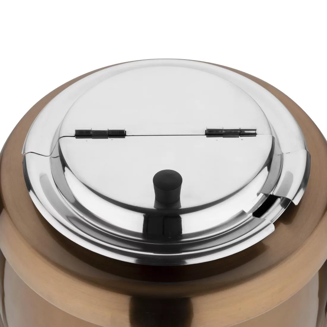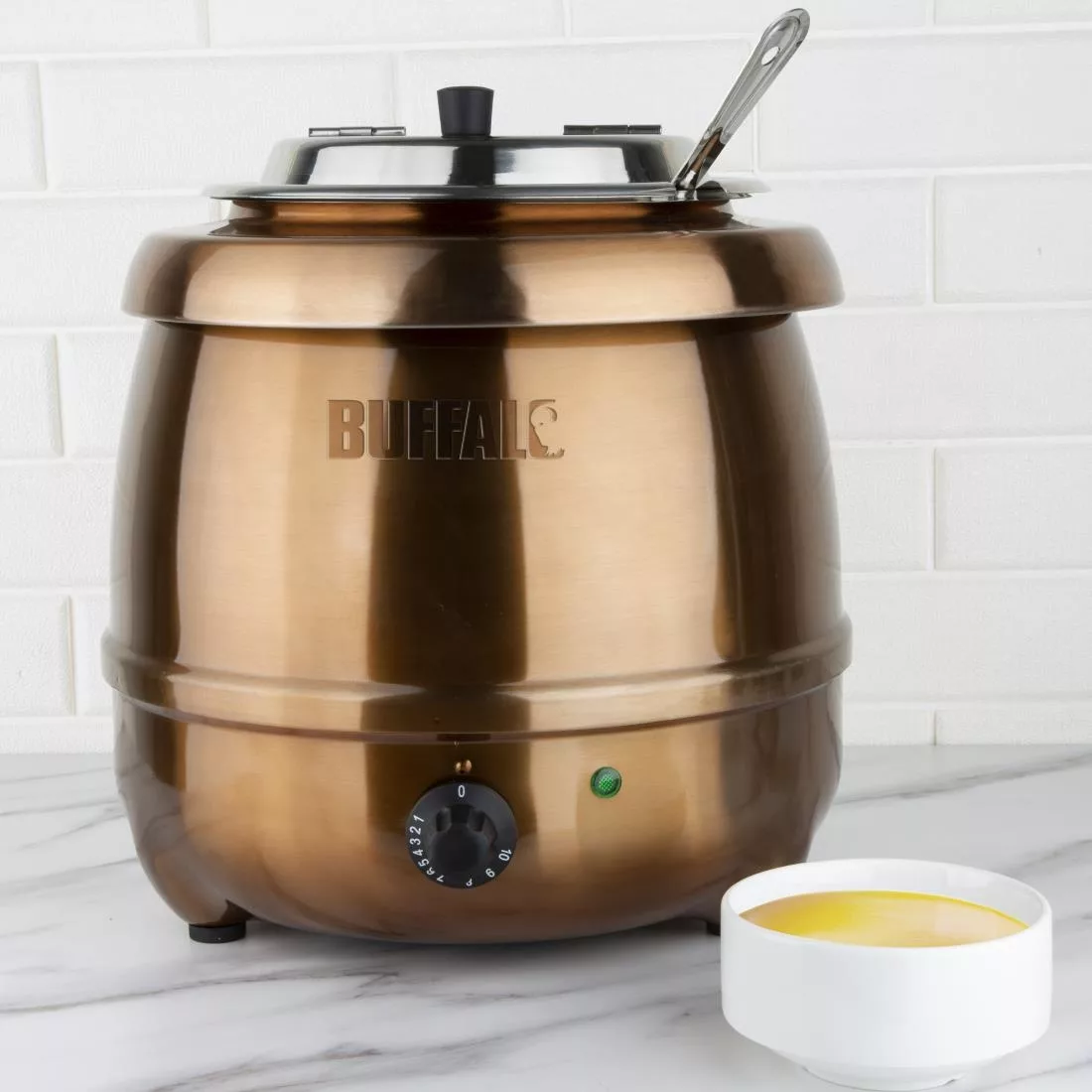 Serve tasty, hearty homemade soup with this copper soup kettle from Buffalo. With enough room to hold up to 10 litres, the kettle offers a huge capacity – making it ideal for keeping up with demand in busy buffets, farm shops, events or cafes.