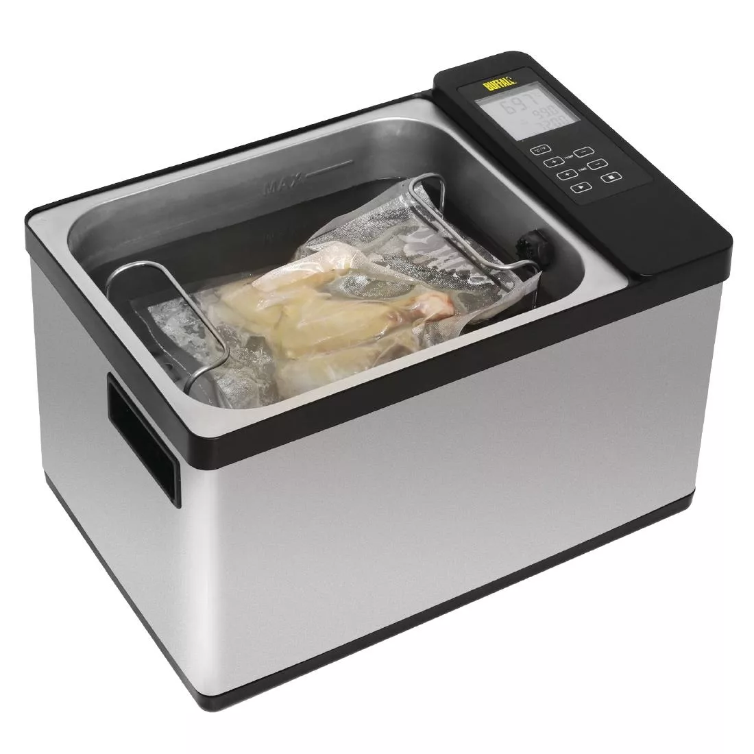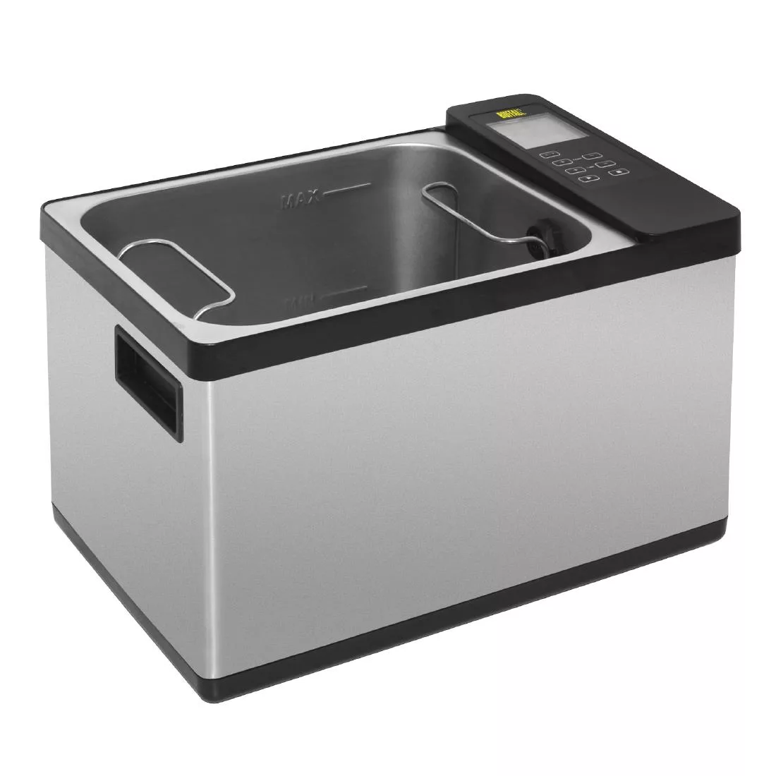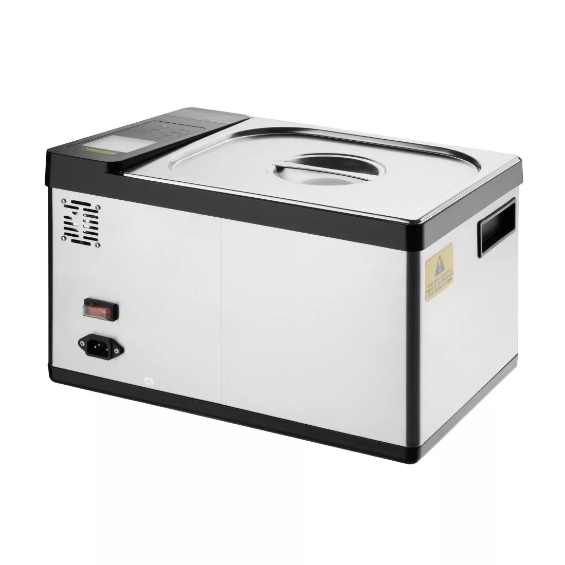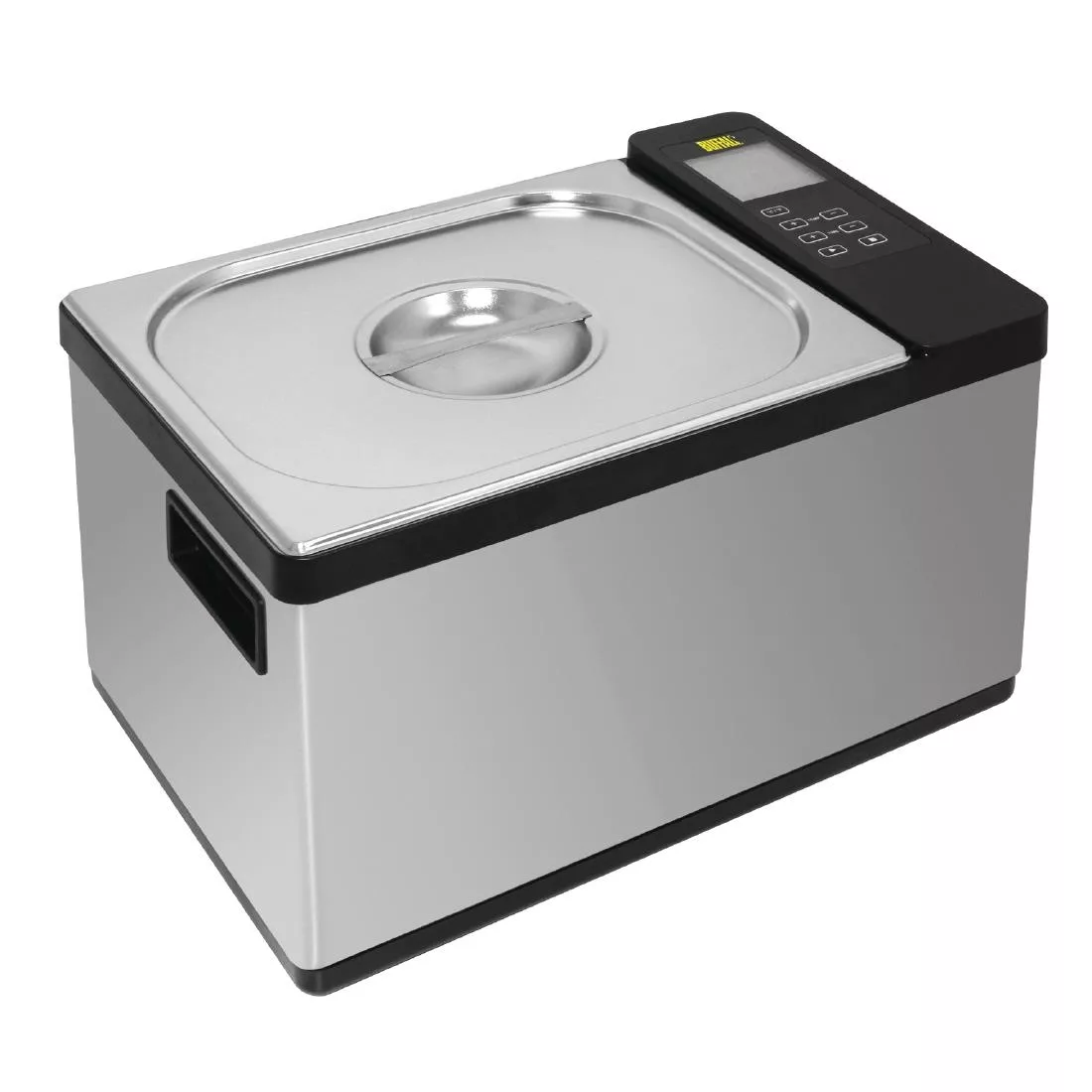 A compact and easy to use sous vide complete with a 12.5Ltr water tank and stainless steel body and lid. The water is circulated, which improves the temperature consistency throughout the tank. Large LCD display screen and easy to use control panel.