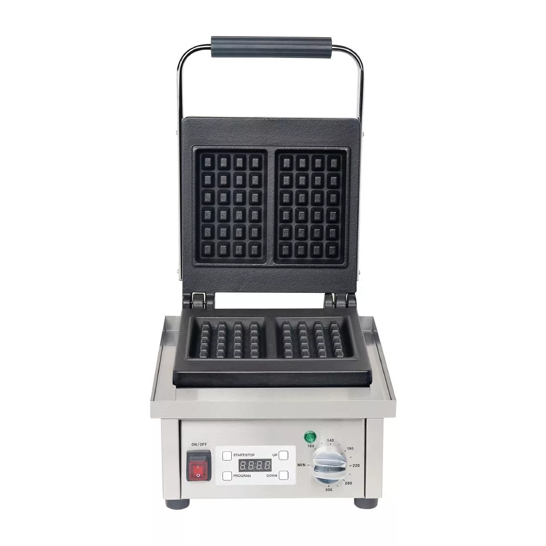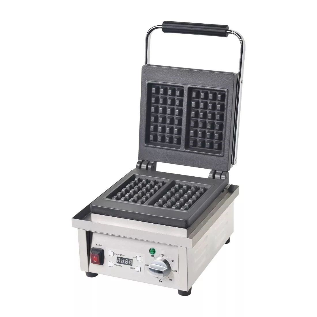 With an excellent cost-per-use and superb profit potential, the Buffalo professional waffle maker is a sweet addition to any kitchen. Built for precision and performance, this commercial waffle iron can make up to 60 waffles per hour – each one cooked to exactly the same standard, thanks to the built-in timer function. Easy-to-use controls allow you to effortlessly regulate the waffle maker get consistent results, whilst the digital display gives you clear indication of your timing settings.