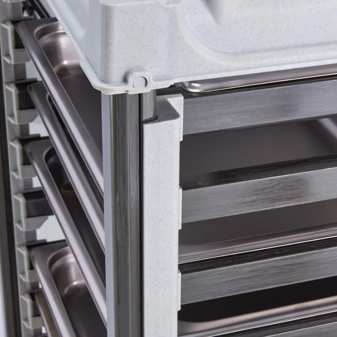 With an impressive lifetime warranty against rust and corrosion, Cambro Camshelving® modular food tray trolleys represent a step-up in food service transport reliability. Built from an advanced stronger-than-steel composite material, the Camshelving® easily outmatches traditional steel trolleys, reducing issues such as noise, weight and fail points.