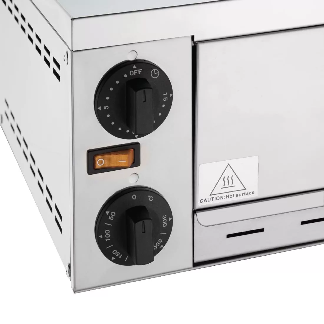 Thanks to its insulated design, the pizza oven delivers fast results, whilst also being energy efficient too, helping to reduce running costs. The simple front-mounted dial temperature and timer makes achieving consistent results incredibly easy, whilst the easy-clean stainless steel construction and compact design ensures the pizza oven is a fantastic choice for mobile catering vans, village cafés and homes.