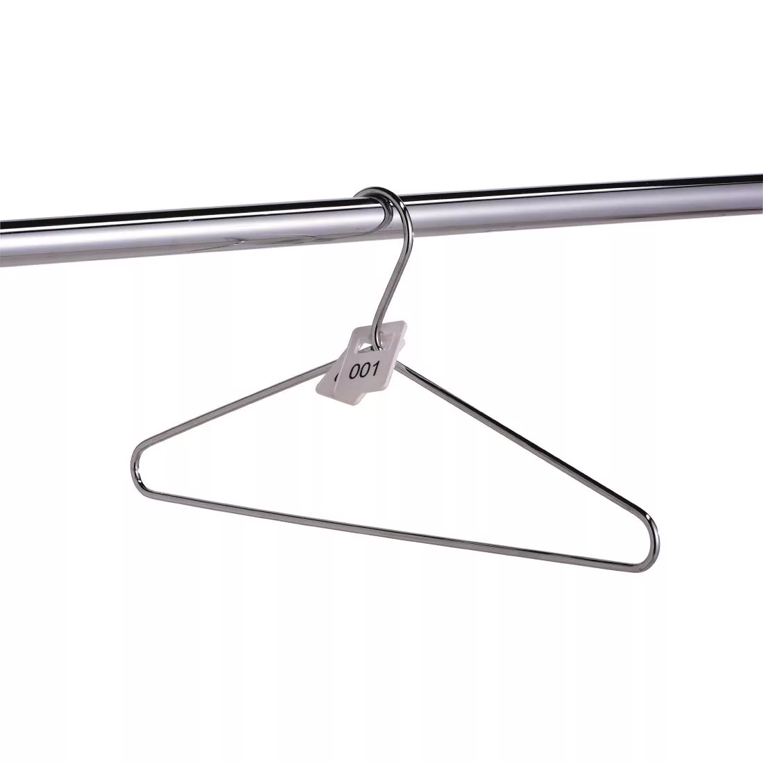 An attractive and sturdy metal hanger, ideal for commerical use. A simple, well designed, numbered cloakroom system for use in restaurants. One numbered tag is given to the client, and the other remains on the hanger to identify the coat.