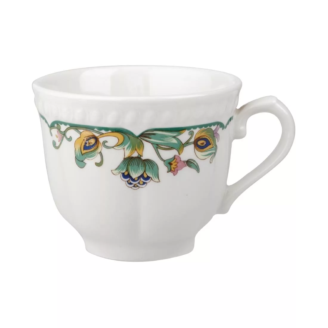 Elegant printed cups by Churchill with a tropical floral design featuring the delicate embossment of the Buckingham shape, featuring a durable glaze which provides an ultra smooth surface for presentation.