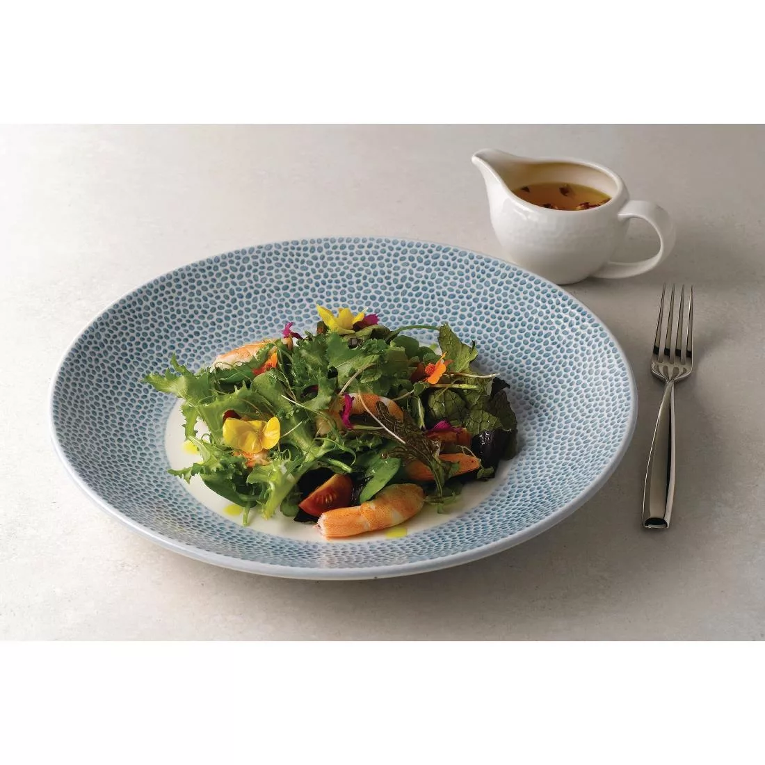 Striking crockery with a statement embossed pattern inspired by shapes found on the shoreline. Ideal for bringing a coastal feel to your venue. Dishwasher and microwave safe.