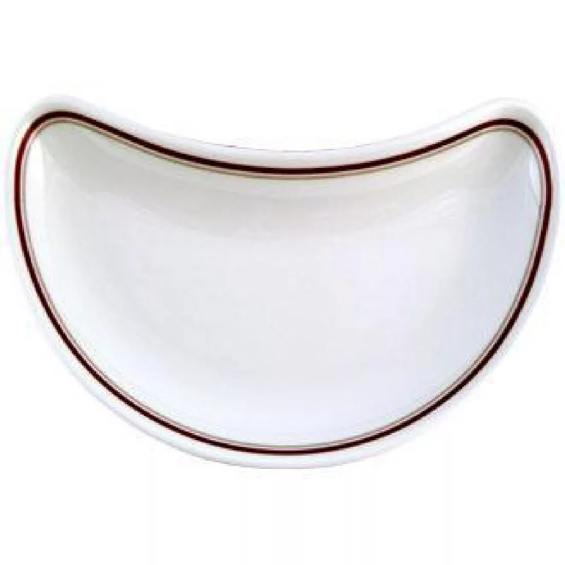 Nova collection by Churchill combines contemporary understated design with functionality and durability combined with Clyde, a simply designed elegant edging of contrasting maroon and grey bands. These crescent shaped salad plates have a vitreous body which does not absorb moisture making them more hygienic.