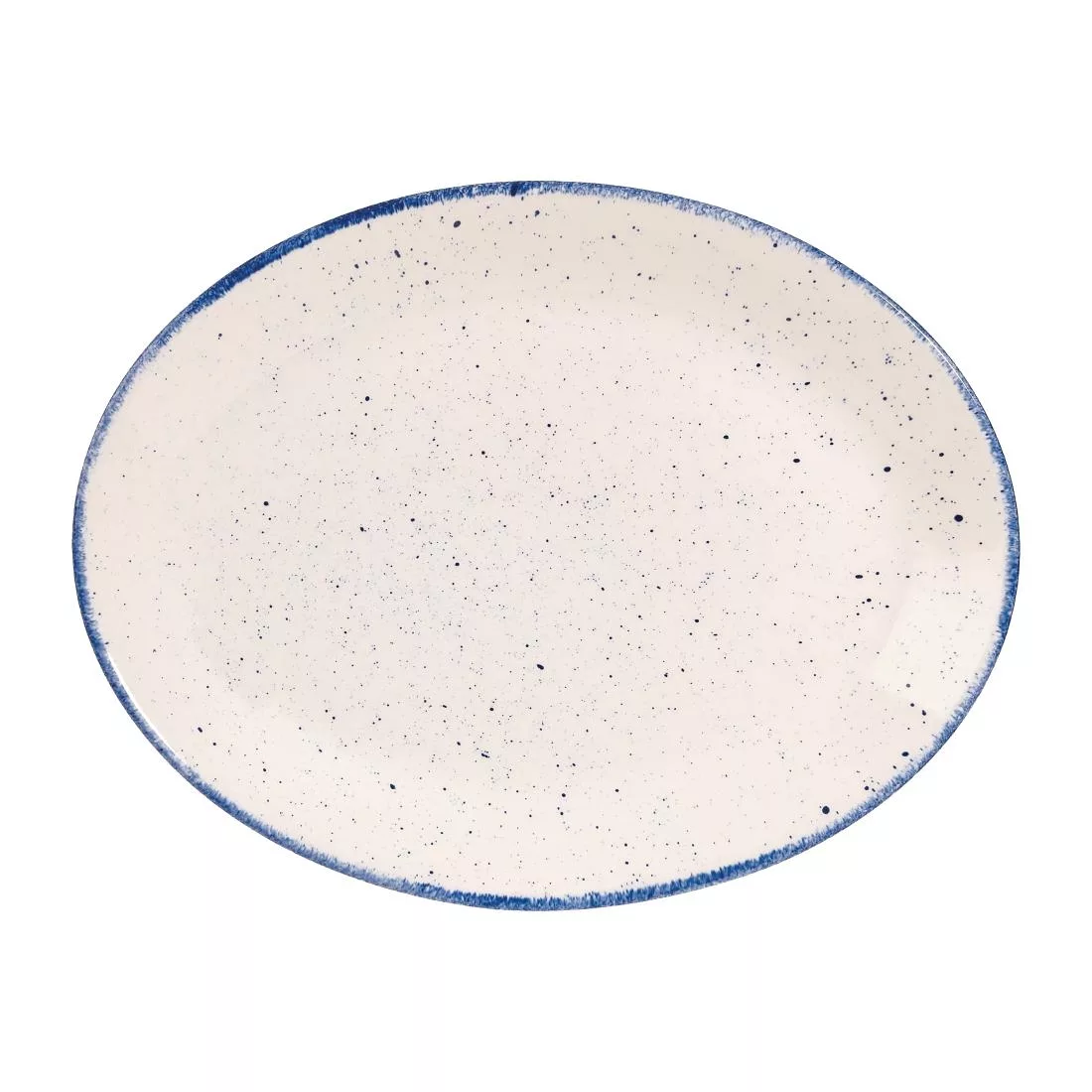 This oval plate by Churchill is manufactured in Britain using specially selected super vitrified ceramic. As a result, these 305(Ø)mm plates offer excellent thermal and physical shock resistance and also have the strength to withstand extensive use in the busiest kitchens and most hectic restaurants. The dappled finish and contrasting indigo rim results in beautiful oval plates which are ideal for serving wholesome, rich and passionately prepared food. These plates are suitable for use in commercial dishwashers and microwaves and are ideal for pubs and restaurants which value quality tableware.