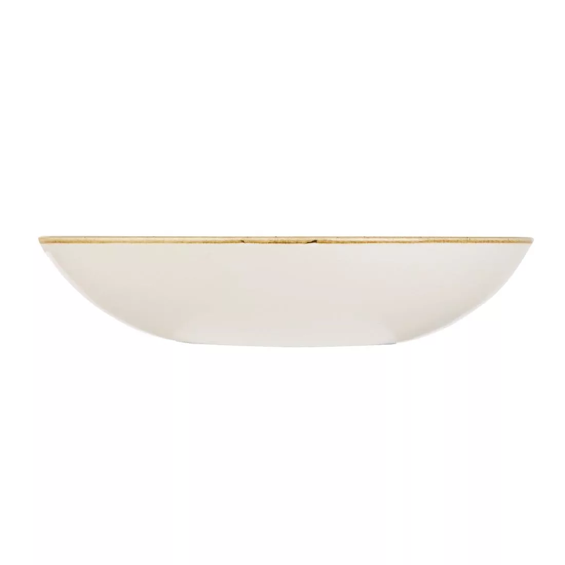 Ideal for presenting large starters, this Mustard yellow coupe plate offers a simple way of adding a little colour to your table setting. Every plate within Churchill’s Stonecast collection has the finish applied by hand; the colourwash is applied with a brush, the golden brown rim is applied with a sponge, and then more golden brown is flicked over the surface. The combination of all these techniques ensures that no two plates are ever exactly the same.