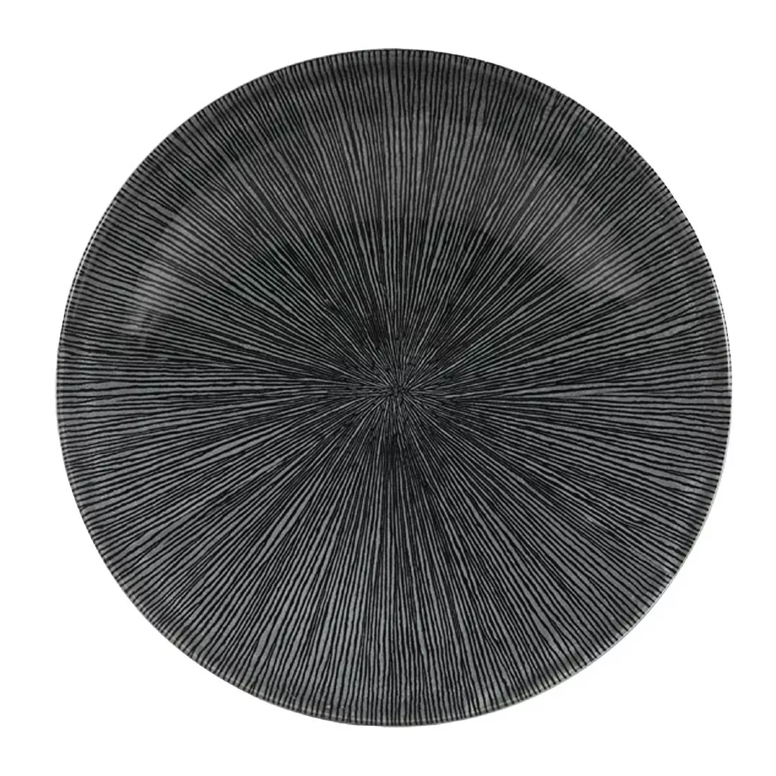 Statement crockery for statement dishes. Finished with an underglaze radial design that draws the eye mid-plate.