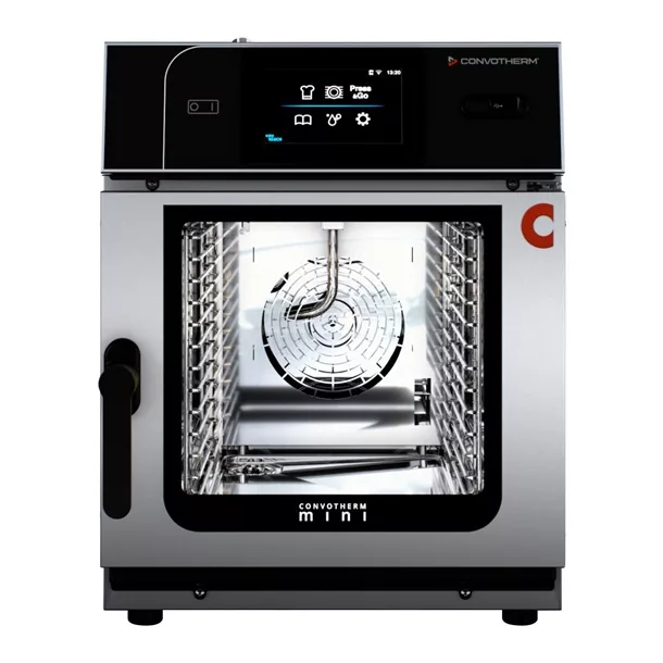 With a width of just 515mm, the Convotherm Mini 6.10 EasyTouch mini combi oven is a fantastic option for professional kitchens with limited space. Thanks to its ingenious interior design, the Convotherm offers a surprisingly voluminous cooking chamber (allowing up to six full-size gastronorm trays) whilst not compromising on performance.