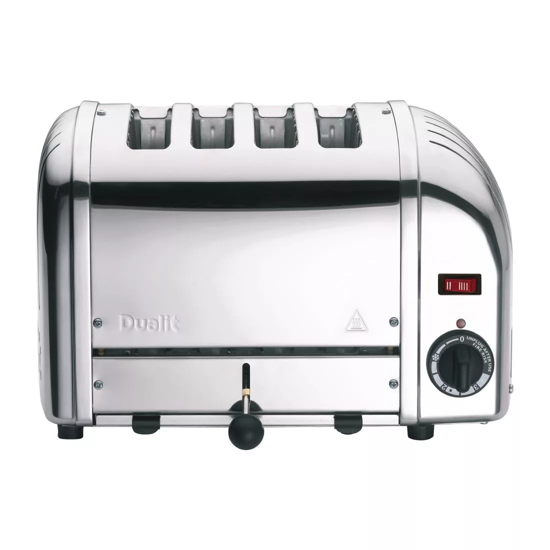A stylish Dualit toaster, designed for commercial use, in a contemporary stainless steel finish. The 4 slice toaster is versatile and easy to use – a selector switch allows you to use just the slots you need, whilst a simple twist timer ensures bread is browned to perfection. The easily replaceable, award winning ProHeat elements ensure your toaster will stand the test of time and sustained use, making it the ideal choice for a commercial kitchen. Once toasted, bread is ejected manually by a push down lever, so it is kept warm until needed.