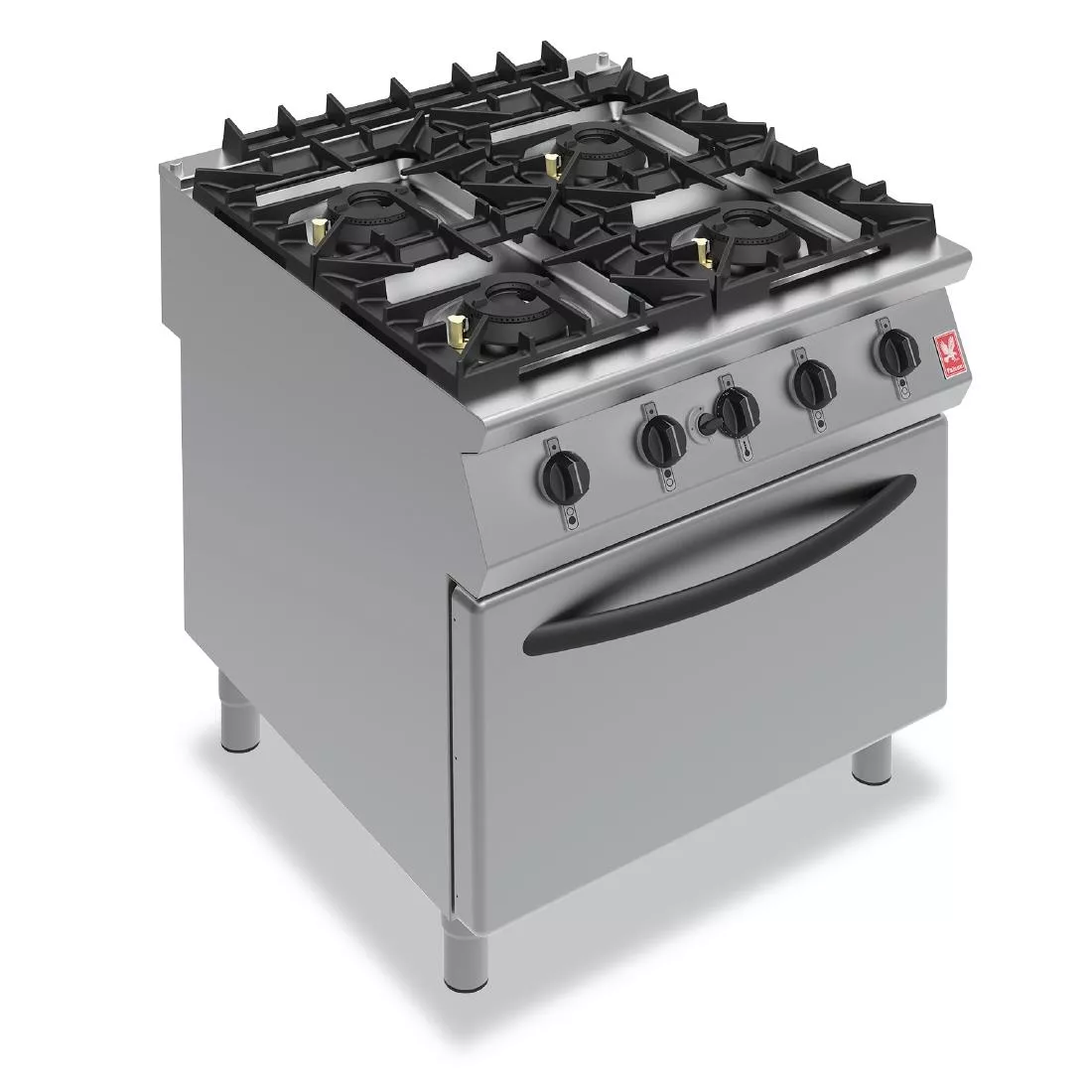 The powerful and reliable natural gas F900 Falcon Oven Range G9184 has been designed to be an asset in any professional kitchen. With four high performance 9.5kW burners and a large 2/1 gastronorm compatible oven, you can roast, bake, boil and much more in this versatile oven range. Robust removable cast iron pan supports can accommodate the largest commercial pots and pans and the oven has five shelf positions to help you maximise the usable space inside. Single-piece pressed hob construction helps to contain spillages and assist cleaning. Fitted with sturdy legs.