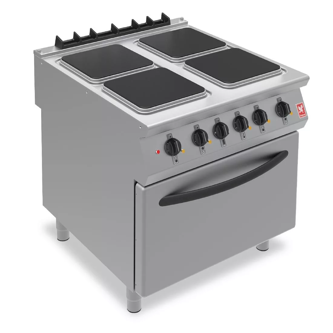 Designed to be a crucial part of your kitchen’s cook line, the Falcon F900 E9184 Electric Oven Range features four high performance 4kW cast iron hotplates alongside a large 2/1 size gastronorm compatible oven with five shelf positions. Each rapid heat-up hotplate is designed for constant, intensive commercial use and can accommodate large pots and pans. The range is controlled via the six front-mounted dial thermostats which provide precise temperature regulation of both the four hobs and oven cavity. Easy to use and clean, thanks to robust stainless steel construction and deep drawn wells which contain spillages. Suites perfectly with other Falcon F900 appliances thanks to the innovative DLS (Dynamic Link System) technology.