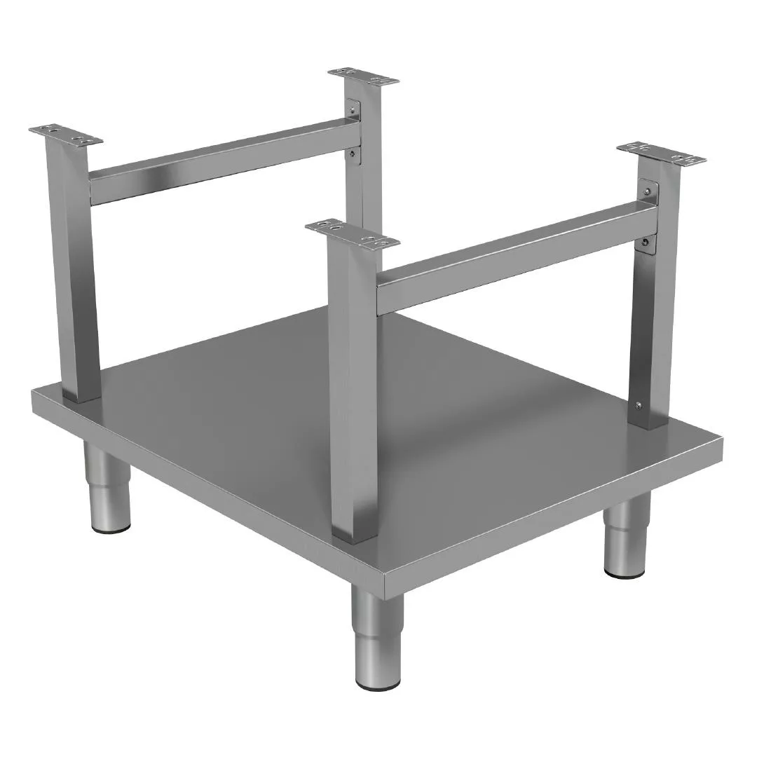 Stainless steel open stand with shelf for mounting any Dominator Plus 600mm wide countertop model on. Is supplied with adjustable feet and is shipped flatpacked so needs to be assembled on-site.