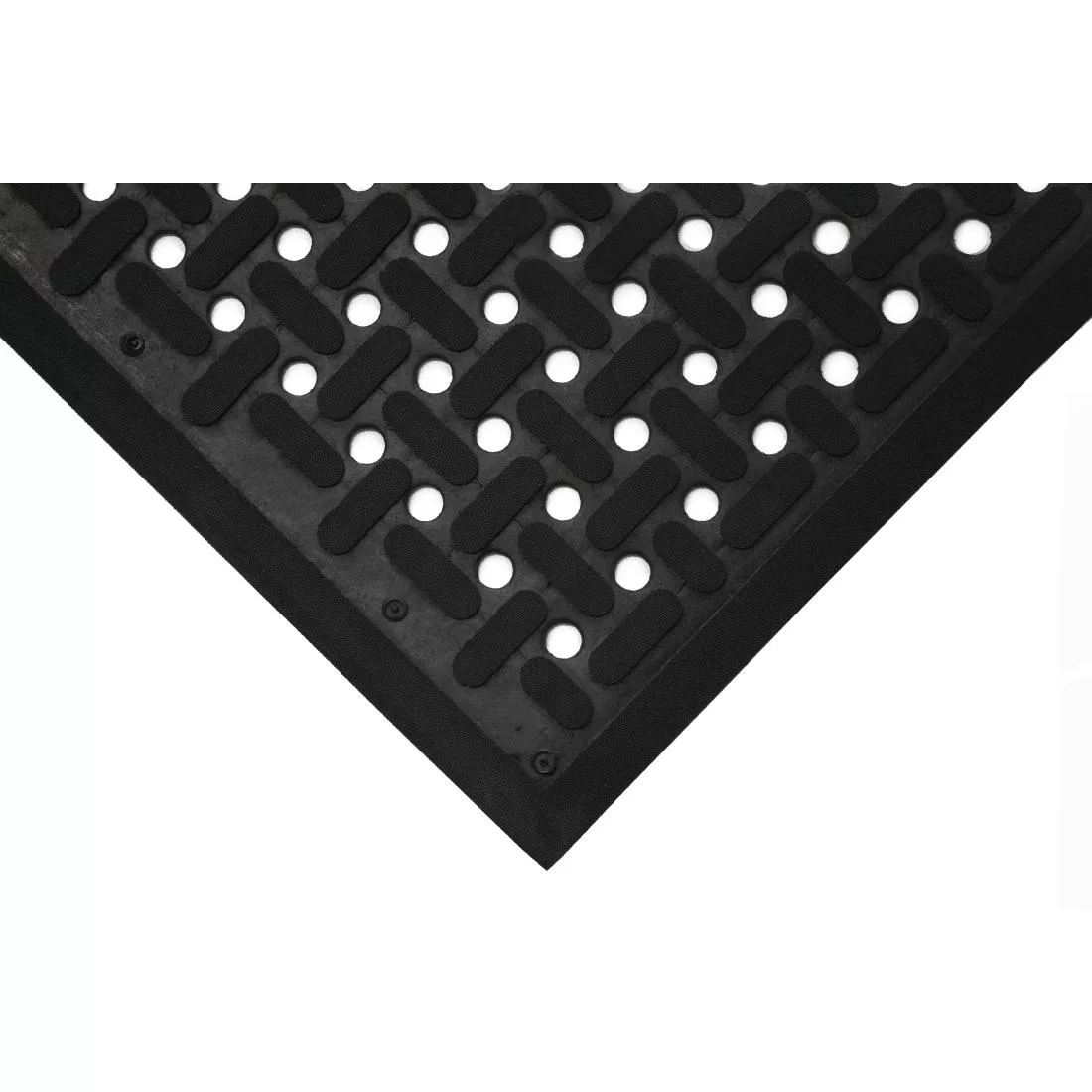 Hygienic anti-microbial, soft nitrile rubber mat with raised textured ‘cross grip’ surface for slip-resistance and fatigue relief. Drainage holes and bevelled edges for safety, ideal for kitchen and pot wash areas. Can be cleaned in commercial washing machines.