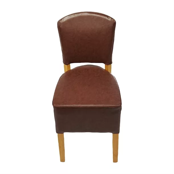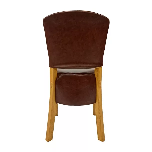 Designed specifically for commercial spaces, this Hanoi dining chair in soft oak makes a striking statement in any setting. The chair features a gracefully rounded back and is upholstered in an espresso brown faux leather which is comfortable to sit on and easy to wipe clean. Built with durability in mind, it guarantees lasting use and boasts a CRIB 5 fire retardant rating for added safety.