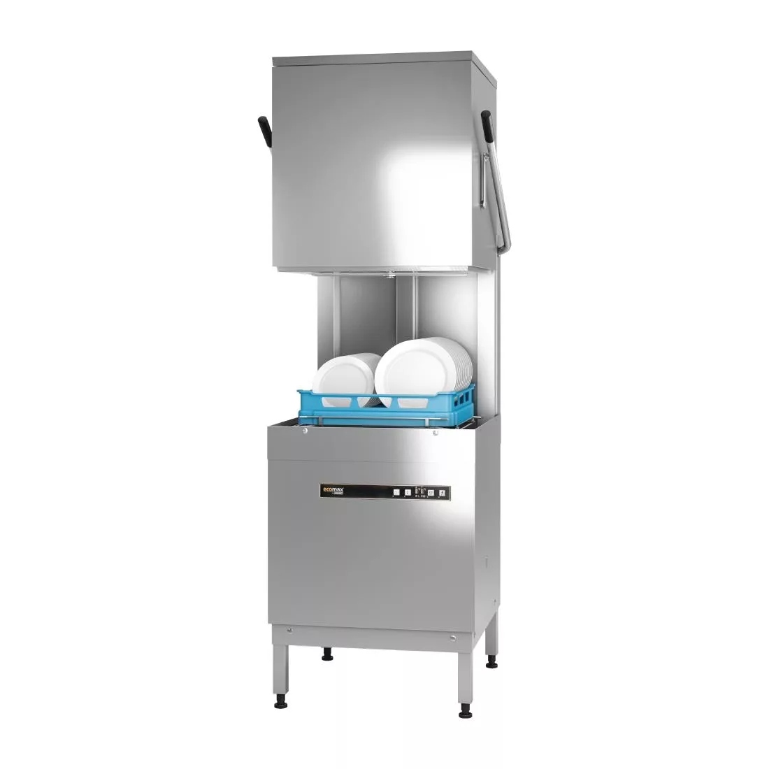 Ideal for use in hard water areas, the Hobart Ecomax ECOMAX H604SW pass-through dishwasher features a built-in water softener to reduce limescale and other contaminants which can damage commercial dishwashers over time. Washing performance isn’t compromised – the powerful three-phase operation effectively washes up to 48 500x500mm racks full every hour, ideal for medium sized sites. The washer is simple to use too, thanks to front-mounted controls and a smooth pull-down hood mechanism.