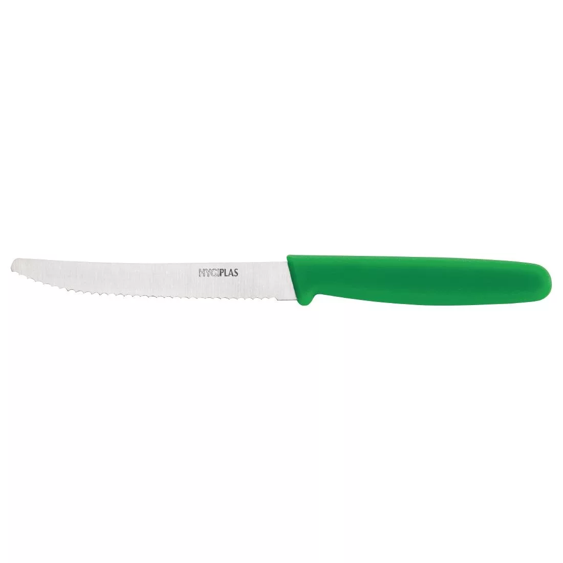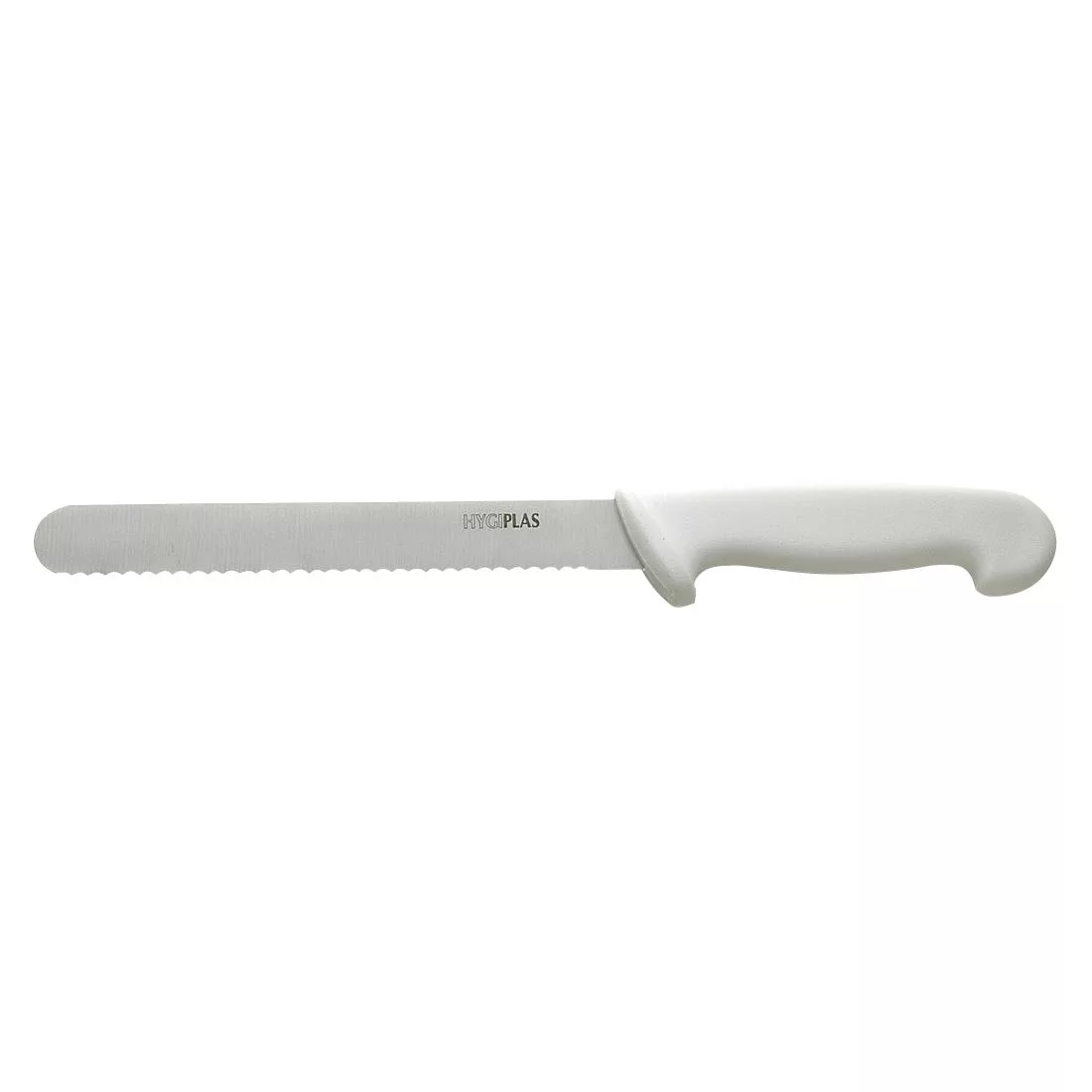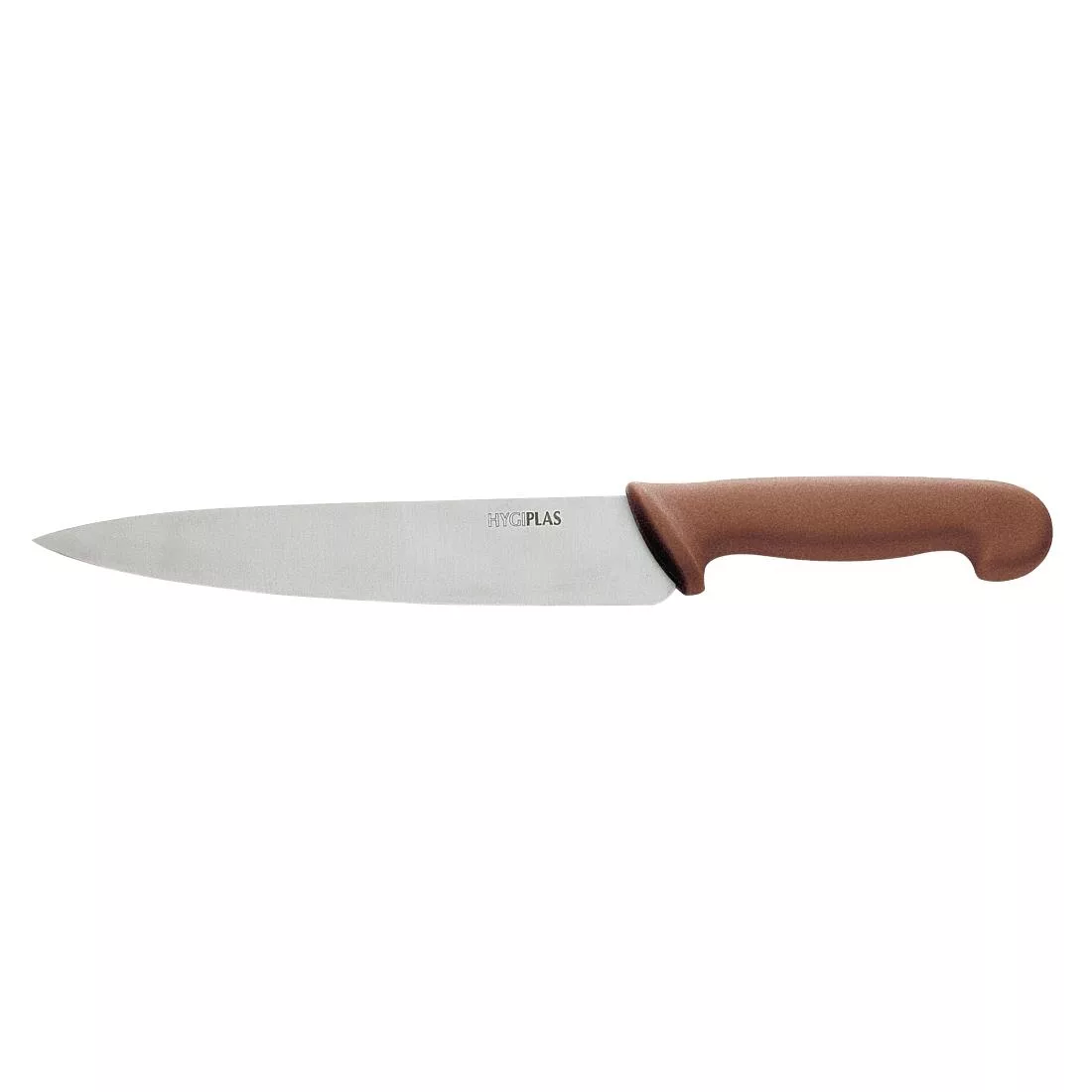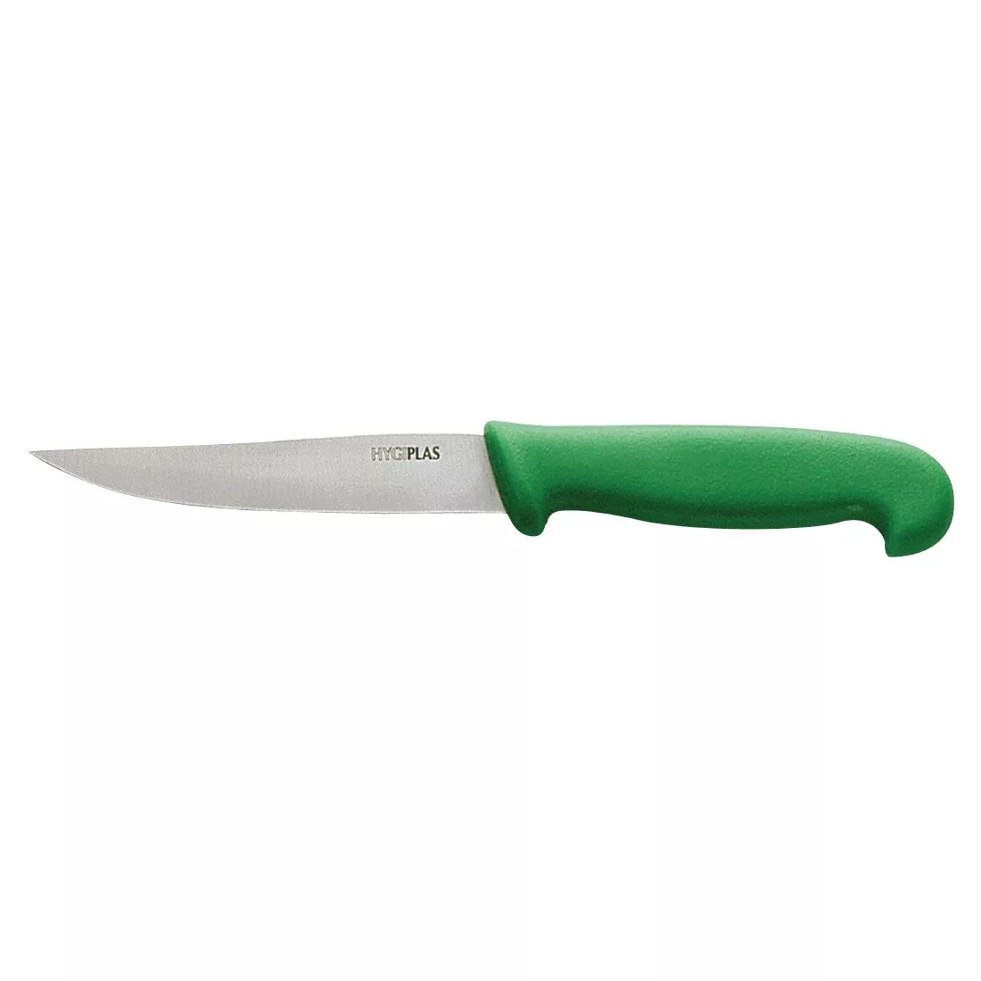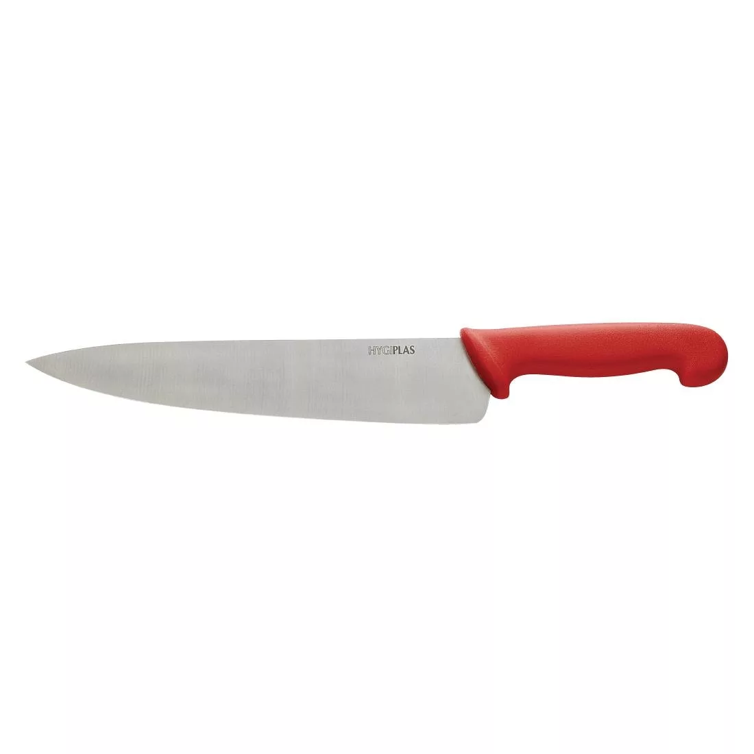 Includes “10” red, 10″ green and 8.5″ brown cooks knives,10″ yellow serrated slicer, 8″ white bread knife, 5″ green scalloped utility knife, 3″ green paring knife, 6″ red stiff blade boning knife, 6″ blue fillet knife, 4″ green serrated vegetable knife, 3.5″ brown paring knife, 8″ white palette knife, carving fork with 6″ prongs, 12″ diamond steel, peeler and carry case.”