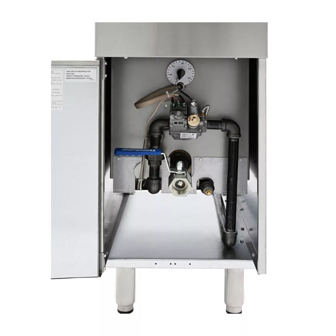 An open pot fryer that allows for easier access and cleaning, the Imperial Twin Basket Fryer gives the user flexibility in their batch sizes, granting the ability to double your cooking amount or set food in at intervals to keep up with customer demand. A quick acting thermostat ensures your food is ready to fry at the quickest possible moment, whilst the large cool zone beneath will house any crumbs and other contaminants, prevent your oil from spoiling during operation.