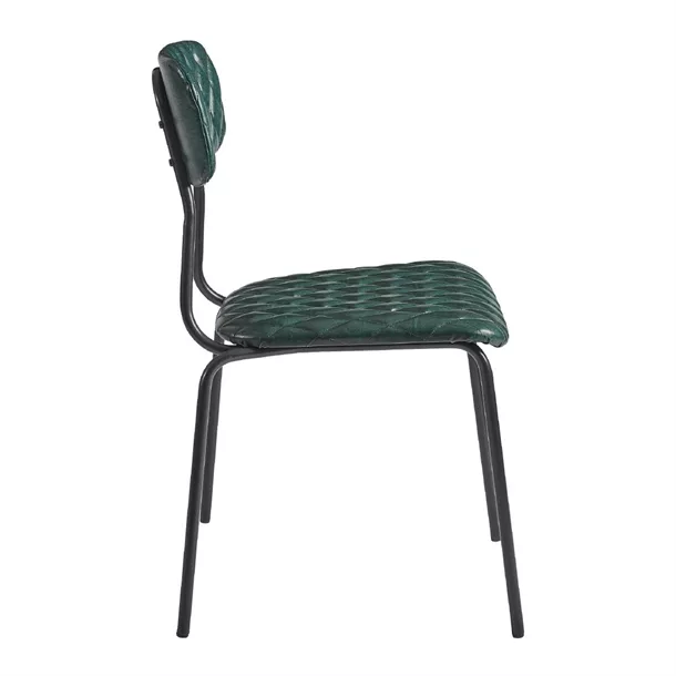 This Kara side chair is beautifully upholstered in the finest vintage teal faux leather and finished with distinctive diamond stitching. Complementing its sophisticated appearance is a powder-coated raw steel frame which gives it a chic industrial style. The Kara side chair is also stackable, providing easy and space-saving storage when not in use.