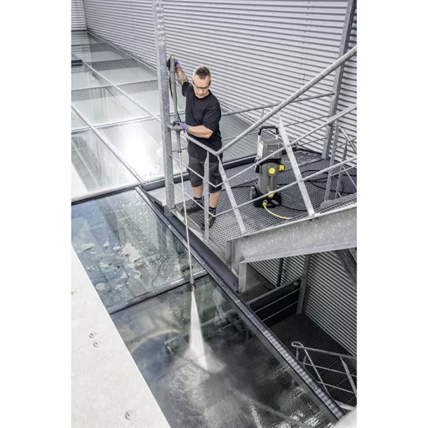 The HD 4/11 C Bp Battery is the first battery powered high-pressure cleaner that is suitable for professional applications. It can be operated vertically and horizontally and impresses with a range of high-quality equipment features like a brass cylinder head, automatic pressure relief and clever accessories storage. Also on board: the EASY!Force high-pressure gun utilises the recoil force of the high-pressure jet to reduce the holding force to zero, while the EASY!Lock quick-release couplings enable handling that is five times faster than conventional screw connections, without compromising on robustness or longevity.