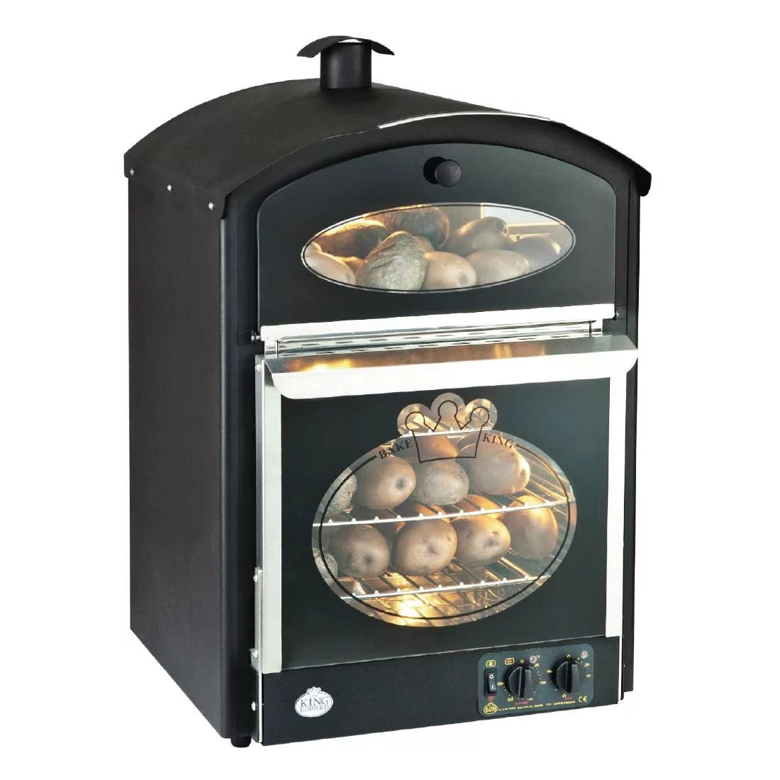 Electric. Black Finish. Power: 2.645kW. Capacity: 120 Potatoes. Output: 72 potatoes/hr