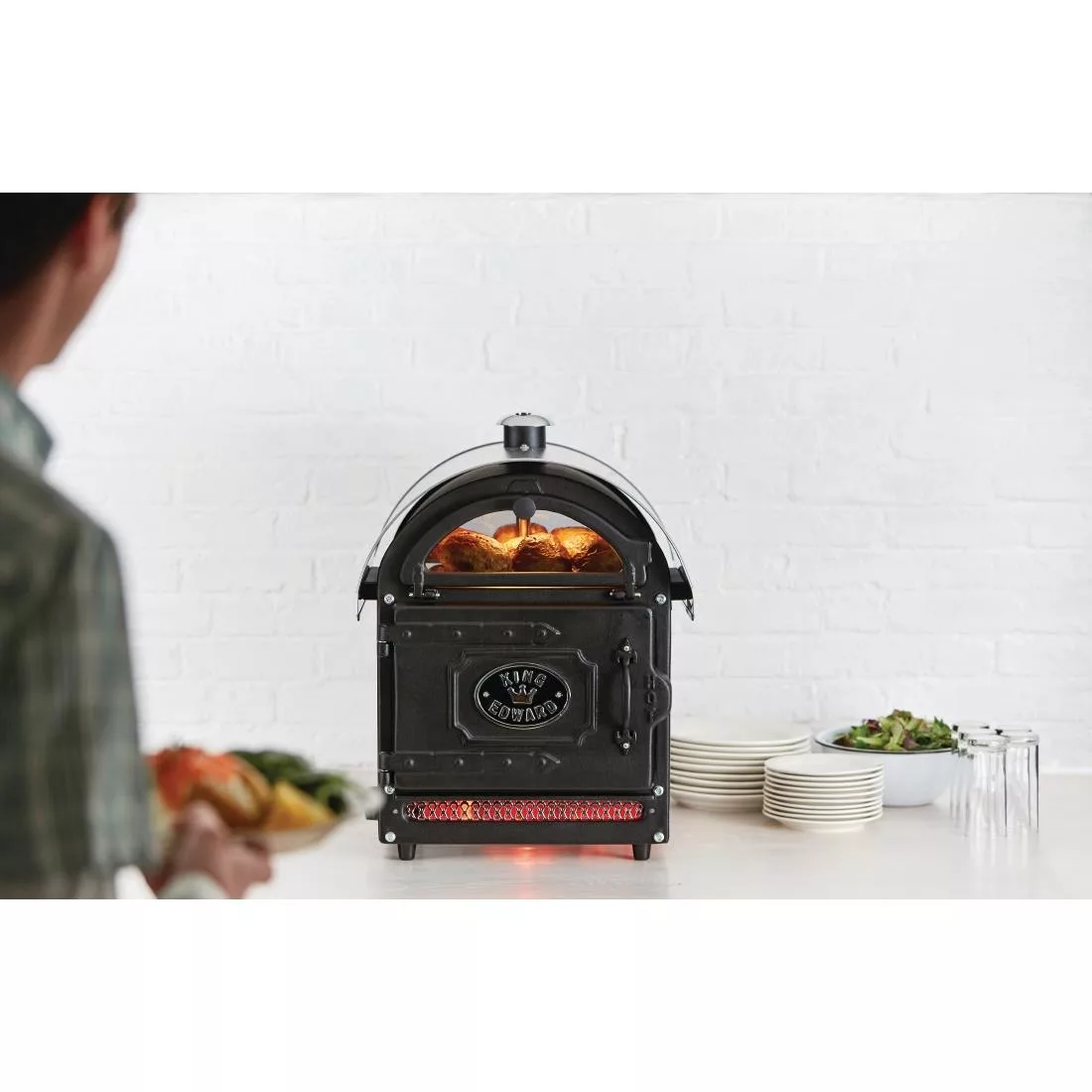 This small King Edward electric potato baker makes perfect baked potatoes, hot and ready to serve in approximately 55 minutes. It is a highly efficient and versatile convection oven which can also be used to cook other foods. Hand built with vitreous enamelled coloured panels, solid cast doors and stainless steel interior, the oven also illuminates the potatoes so you know when they are ready to be served.