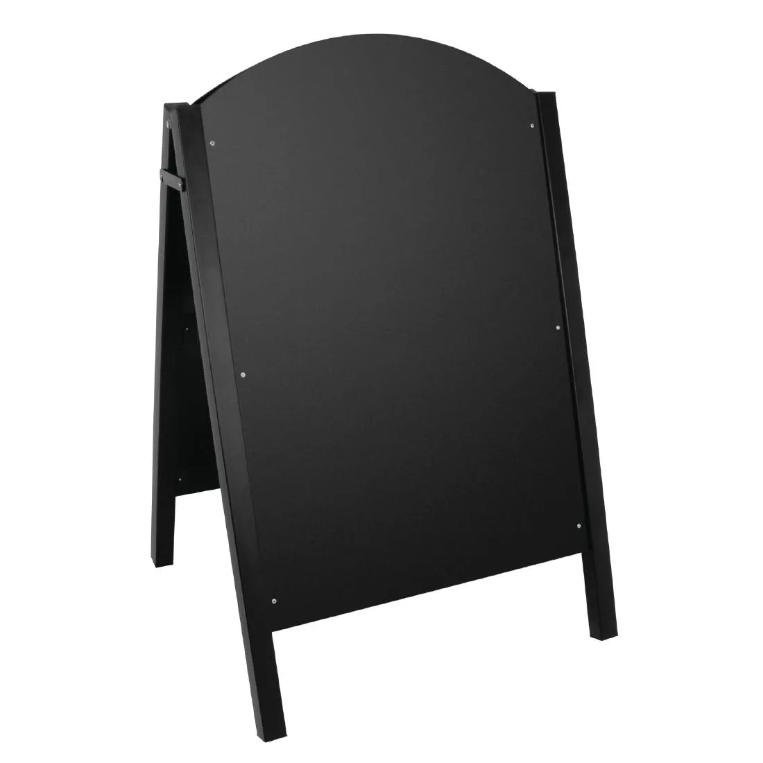 This weather resistant A-board is perfect for catching the eye of passing trade. You can advertise special offers, events or even just promote your menu. Chalkboards offer an effective and cost efficient way of marketing that can be updated with new information in seconds. If used with liquid chalk pens, the boards will not create any dust and can easily be wiped clean using Securit chalkboard cleaner (Y994). This arch-topped and borderless design maximises the writing area and the simple latch design ensures the perfect angle for your board.