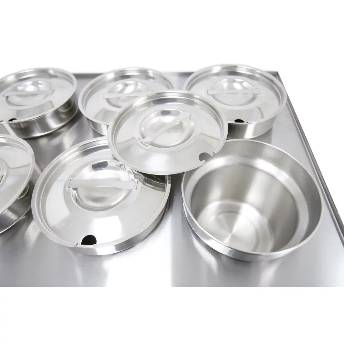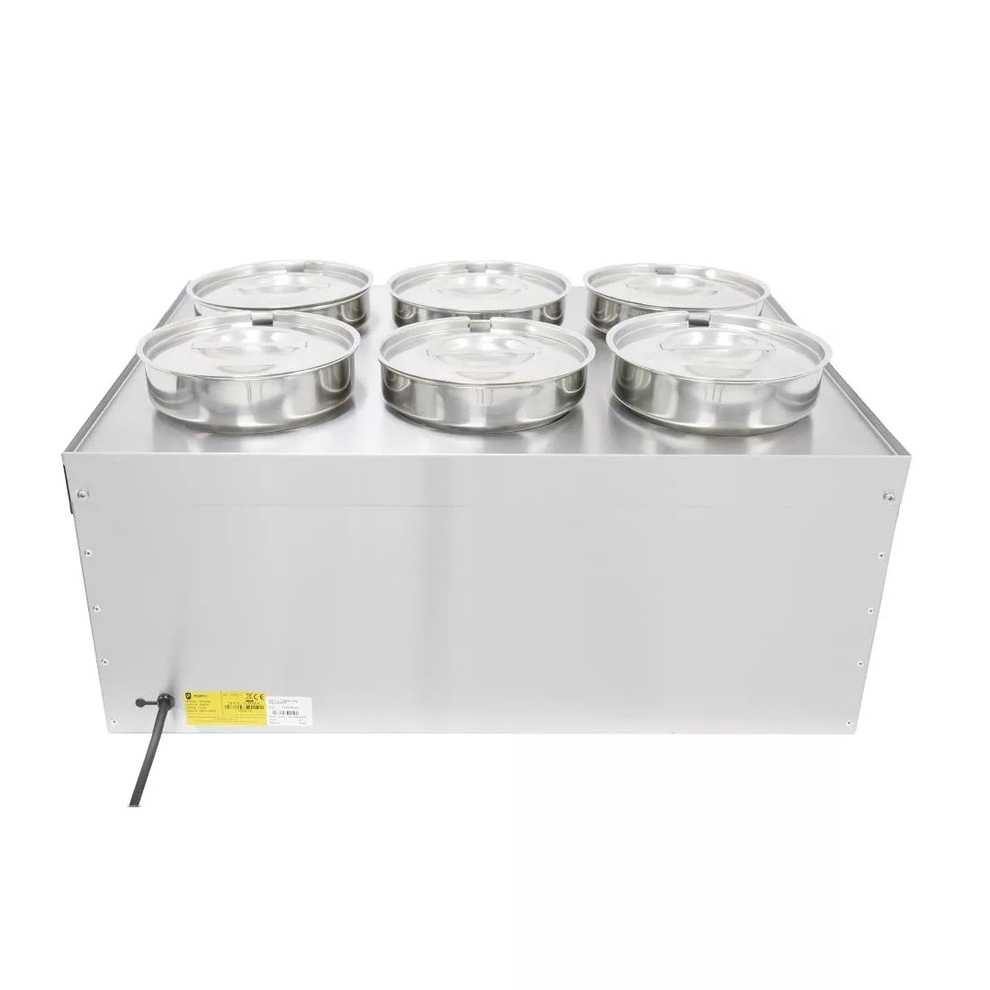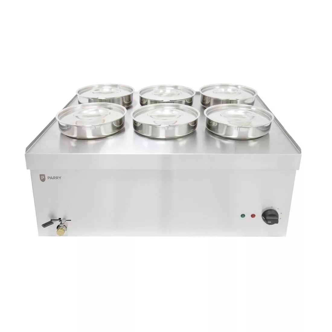 Featuring six 4 litre pots (supplied as standard), the UK-made Parry NPWB6 bain marie has the capacity and versatility to let you warm and serve a wide variety of pre-cooked foods simultaneously. Suitable for everyday professional use, the Parry uses wet heat functionality to gently warm foods for extended periods, keeping them appetizing and ready to serve.