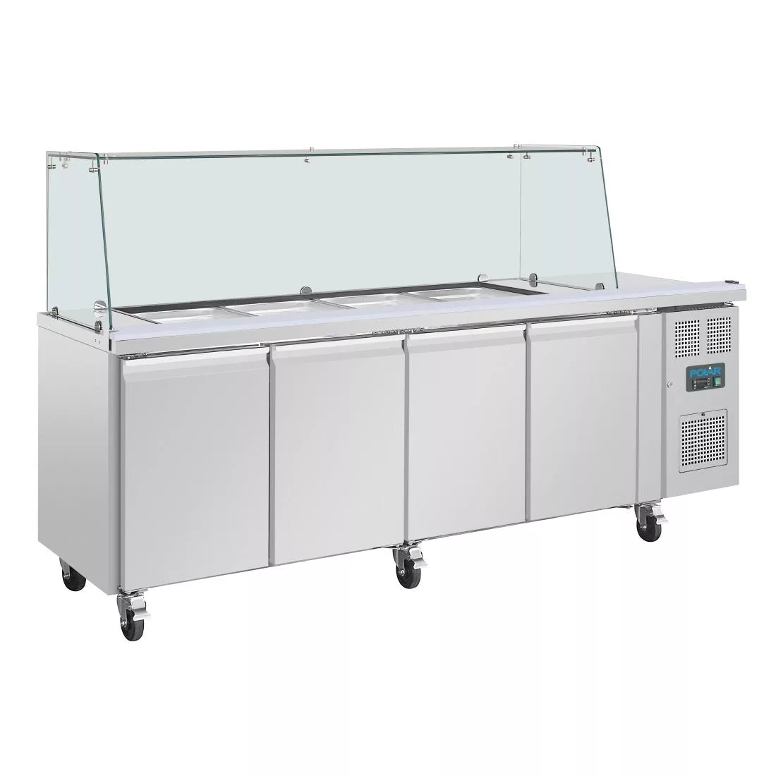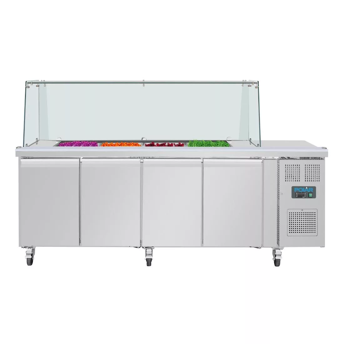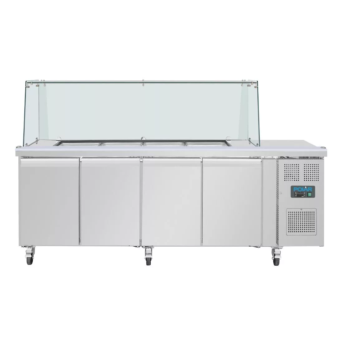 Polar U-Series GN Saladette Counter with Square Sneeze Guard 4 Door