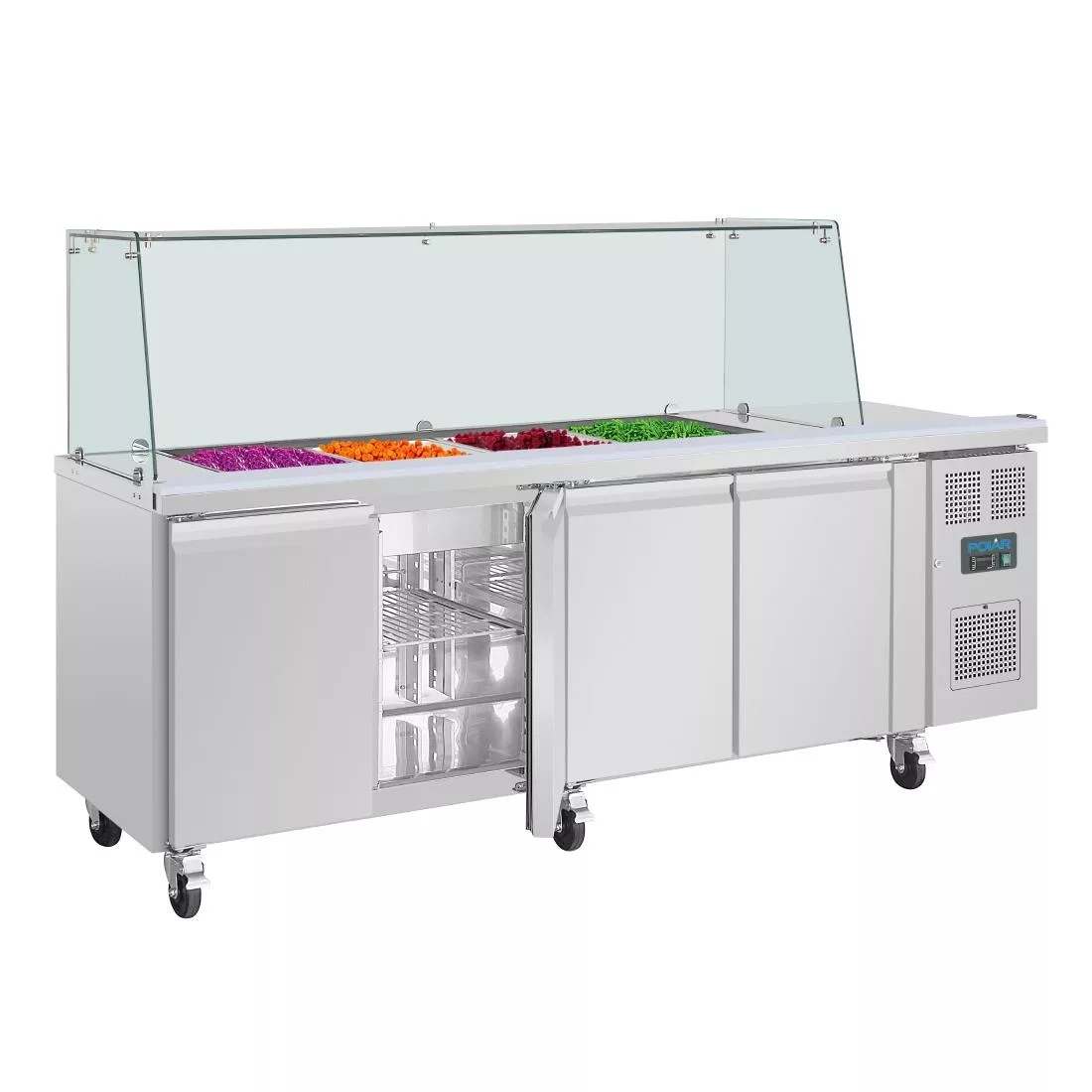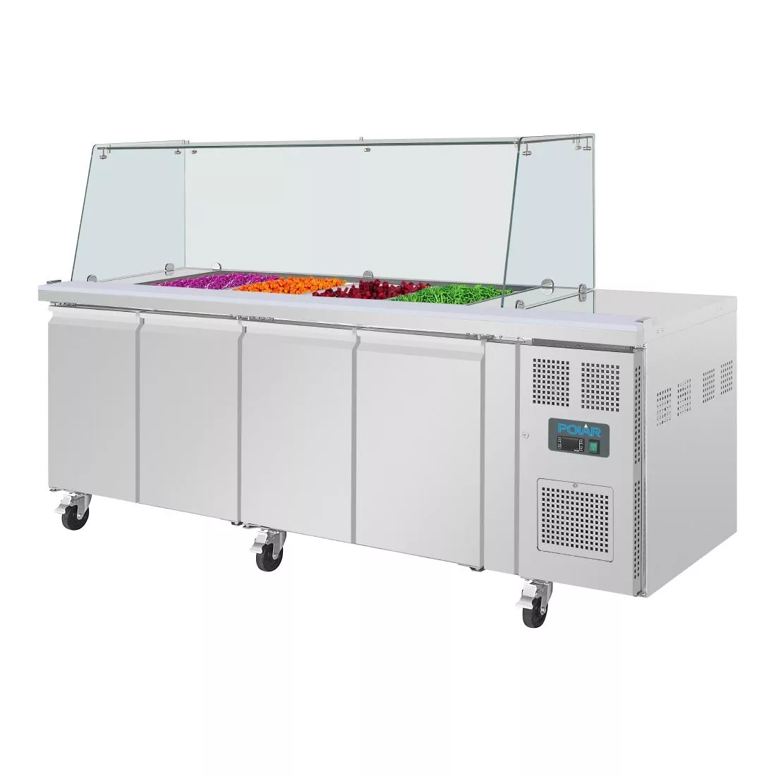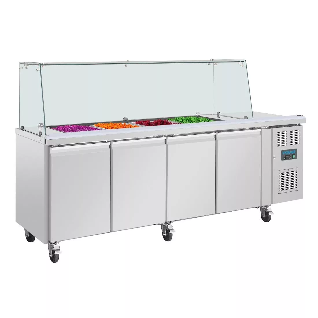 Polar U-Series GN Saladette Counter with Square Sneeze Guard 4 Door