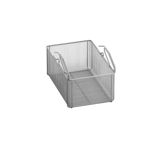 The 490mm wide Rational deep frying basket is specifically designed to aid frying food in Rational iVario Pro XL cookers. Simply hook on the arm of the automatic raising and lowering mechanism, then load the food. At the end of the cooking process, the basket can be automatically lifted out of the cooking liquid, ensuring the food can drain and be removed effortlessly.