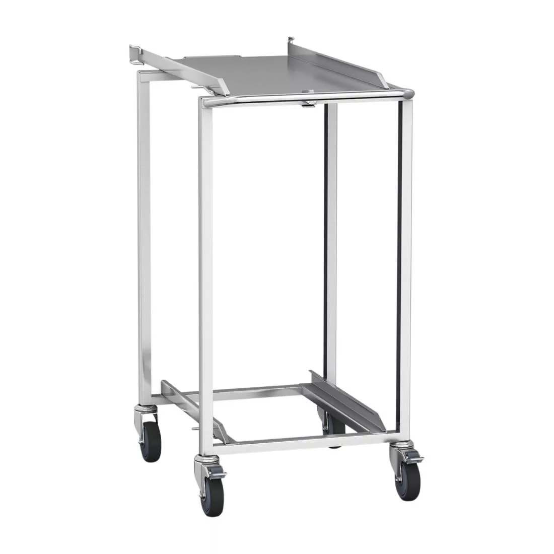 The Rational transport trolley enables the easy loading and unloading of a mobile oven racks. This standard version perfectly matches the height for unit setup on stands.