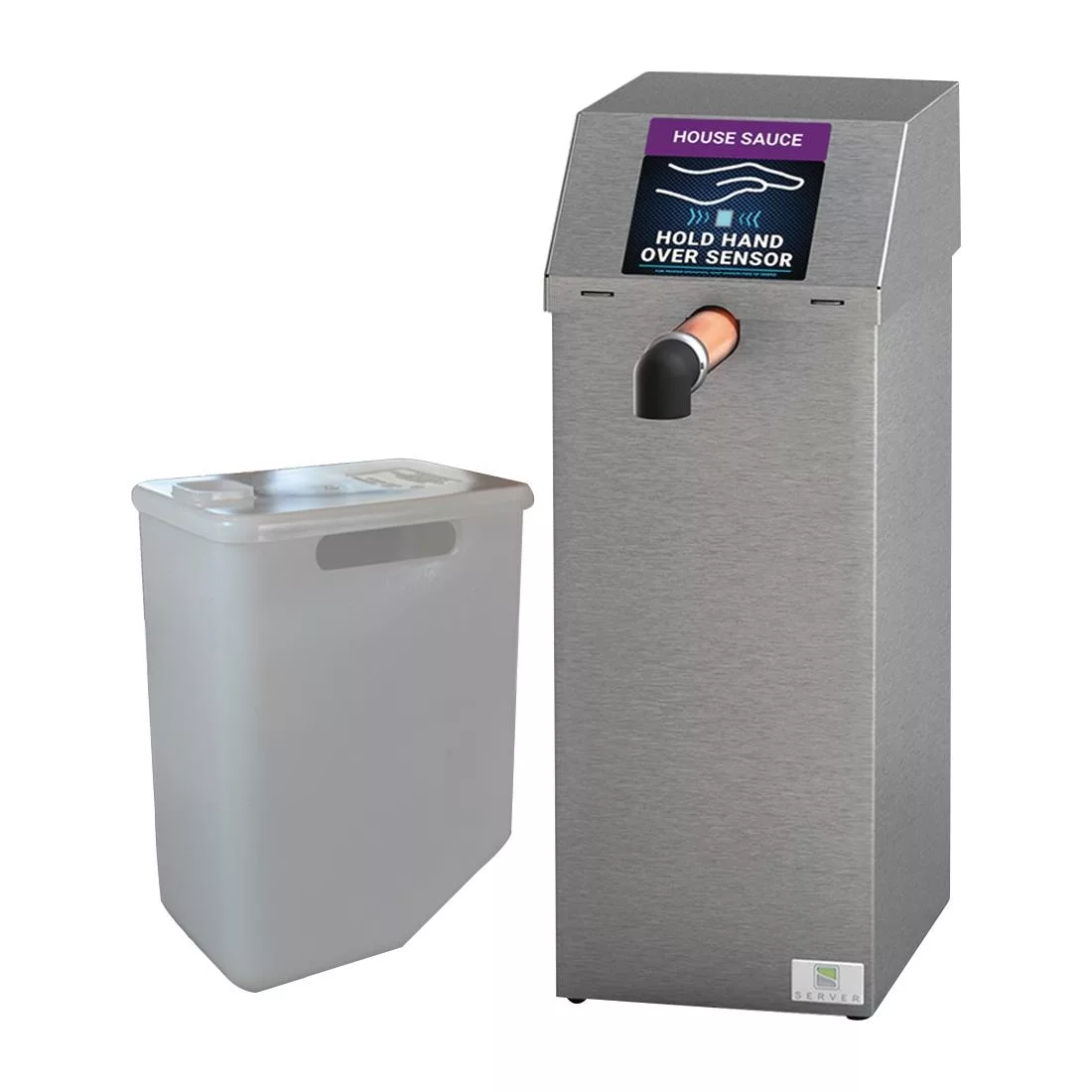 Increase customer safety with touch-free sauce dispensing at self-serve stations. The Server Touchless Dispenser dispenses condiments from thin syrups and hot sauces to thicker products like relish and condiments with small particulates. Ideal for filling takeout/delivery portion cups.