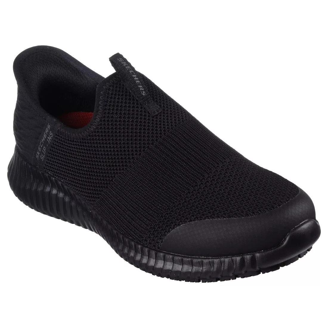 Experience slip-resistant safety with slip-on convenience with these EU size 36, women’s slip-on trainers from Skechers’ Cessnock range. This slip-on work style features a smooth woven mesh upper with a hot melt toe overlay that not only makes the trainers breathable but also ensures excellent durability. Skecher’s exclusive Heel Pillow and Air-Cooled Memory Foam cushioned insoles ensure maximum comfort during walking and standing – ideal for staff members that are on their feet all day. Additionally, excellent slip resistance keeps your staff on their feet on even the most slippery of surfaces.