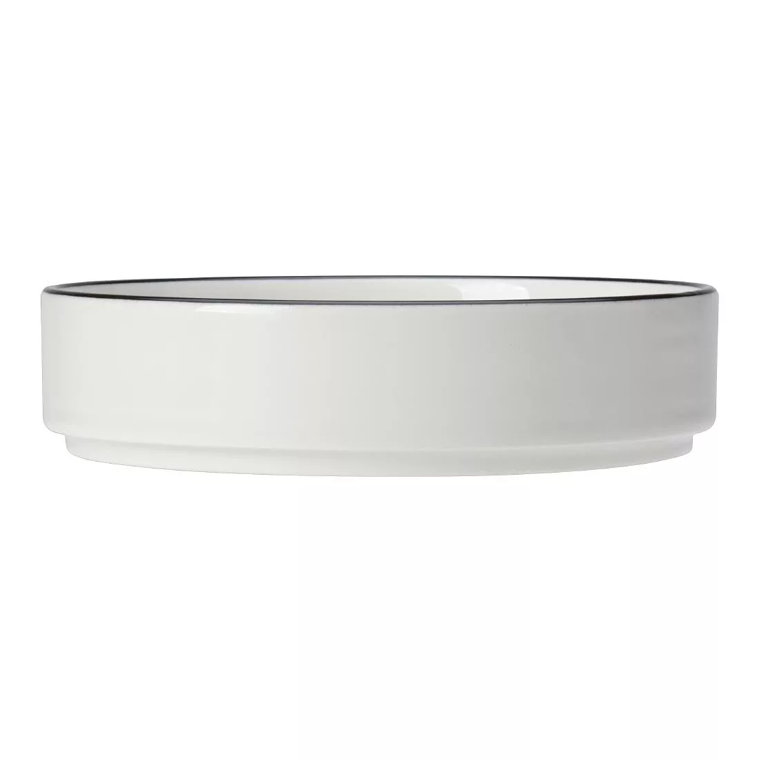 Asteria is an object lesson in minimalism. A pristine white surface allows Chef¿s creativity to shine unimpeded and the rimless profile maximises the plating area, allowing the elements of the dish to breathe. The deep black band constrains the presentation and draws attention to the plated food, adding focus and highlight.