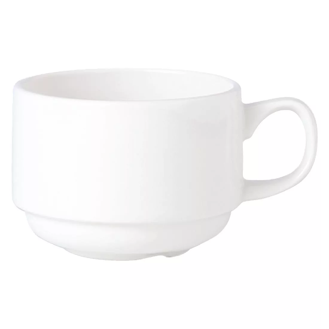 Combining excellent presentation with practicality, Simplicity White is ideal for any casual dining occasion from hotel breakfast, through cafe lunch to pub dinner. This stacking slimline cup complements all types of menu and food presentation by providing a versatile and simple backdrop. The cup is made from a strong and highly durable ceramic body, making it easily able to withstand the trials of daily use, is microwave, dishwasher and freezer proof, and has great heat retention for efficient service.