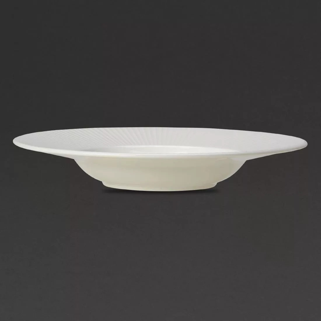 These attractive bowls from the Steelite Willow range combine a delicate and refined feel with the supreme durability of Steelite alumina vitrified ceramic to give the perfect bowls for any busy restaurant which wants elegant whiteware which will last. Finished with extra wide rims, these bowls are perfect for pasta, soups or bisques and feature the precision hatch detailing which define the Willow range.