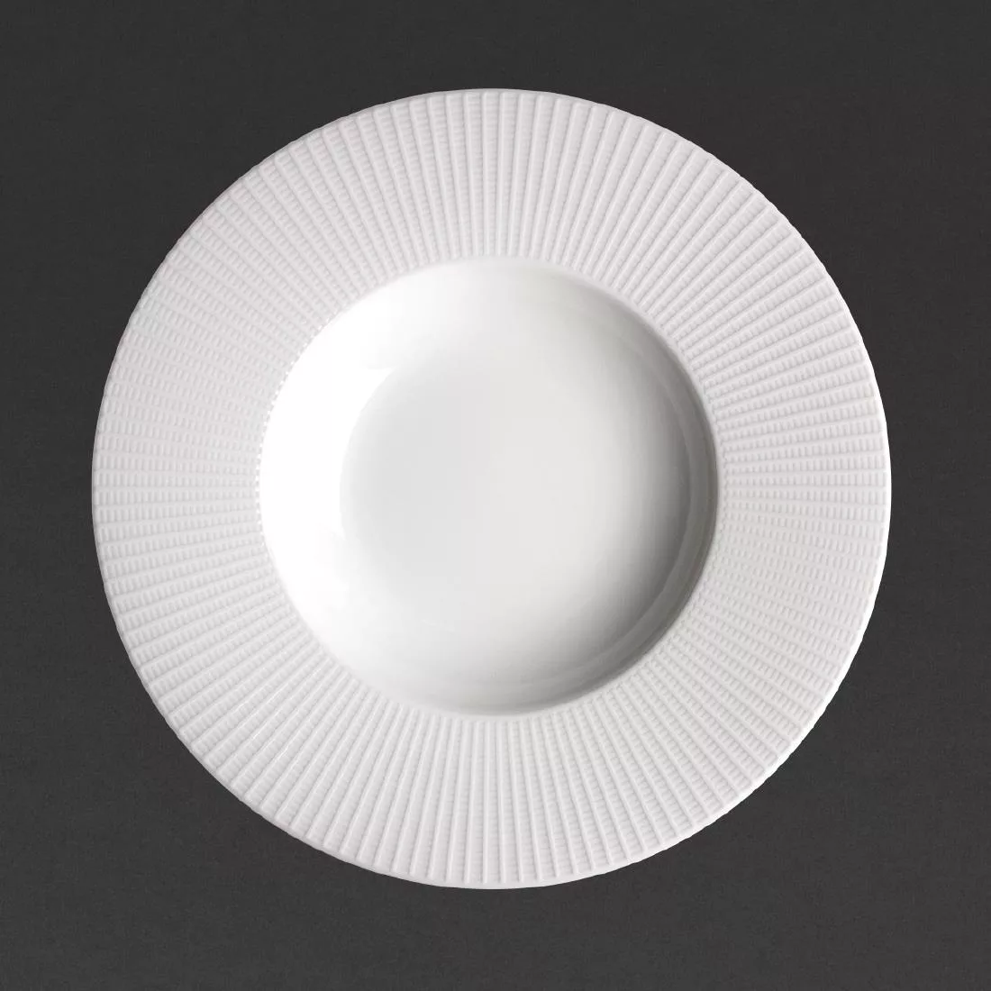 With a wide textured rim which draws attention toward the centre of the bowl, these Steelite Willow bowls are the perfect way to showcase your food. Made of supremely strong alumina enriched ceramic and designed to endure even the most robust commercial catering environment these patterned white bowls are perfect for pasta or as bowls for soups or bisques. The brilliant white glaze ensures that light reflects from the textured rim to give uniquely attractive bowls.